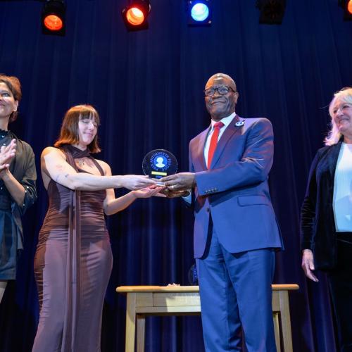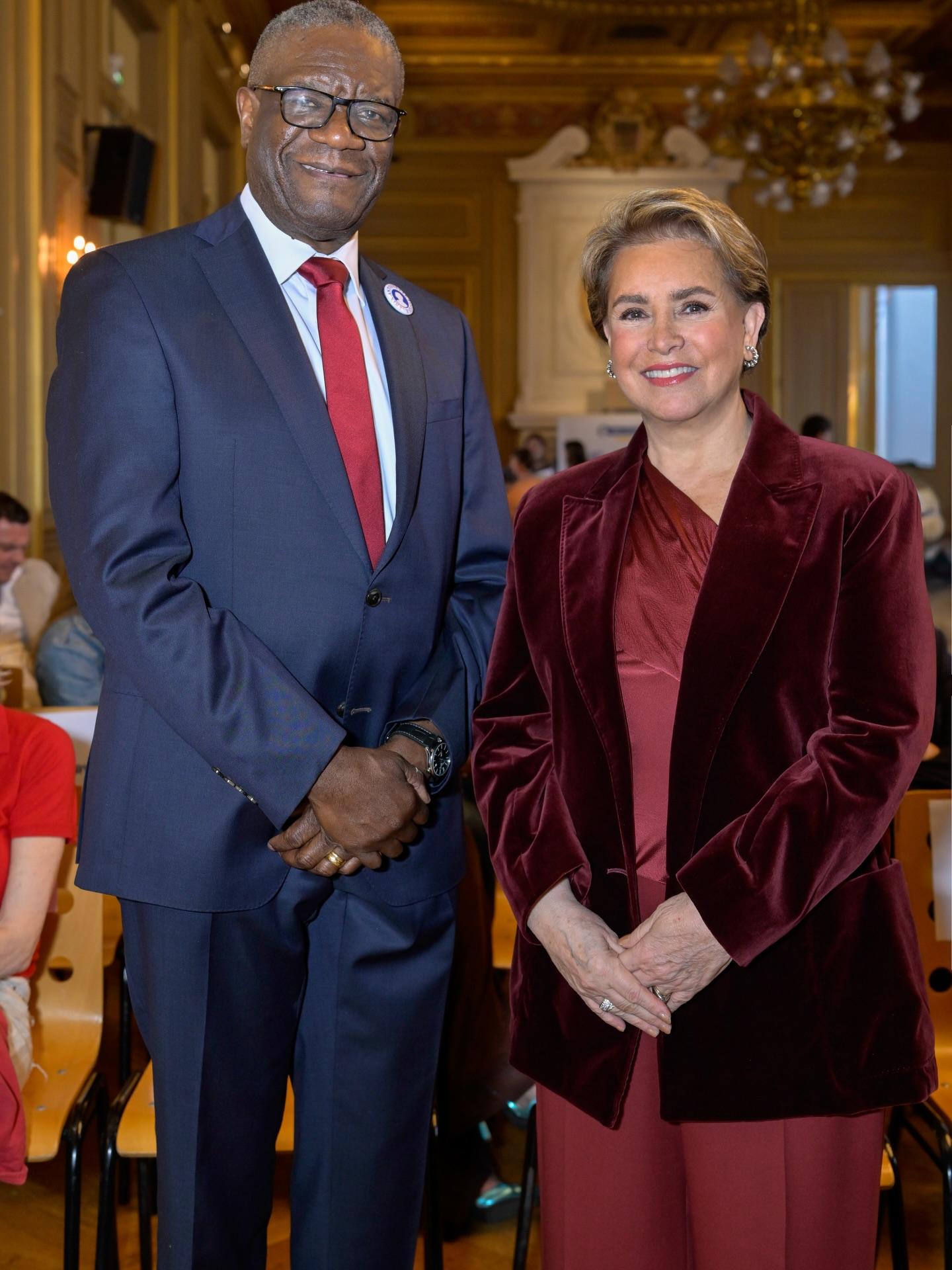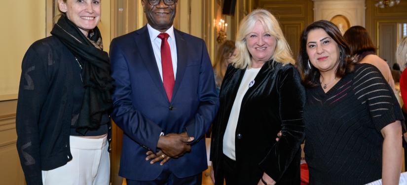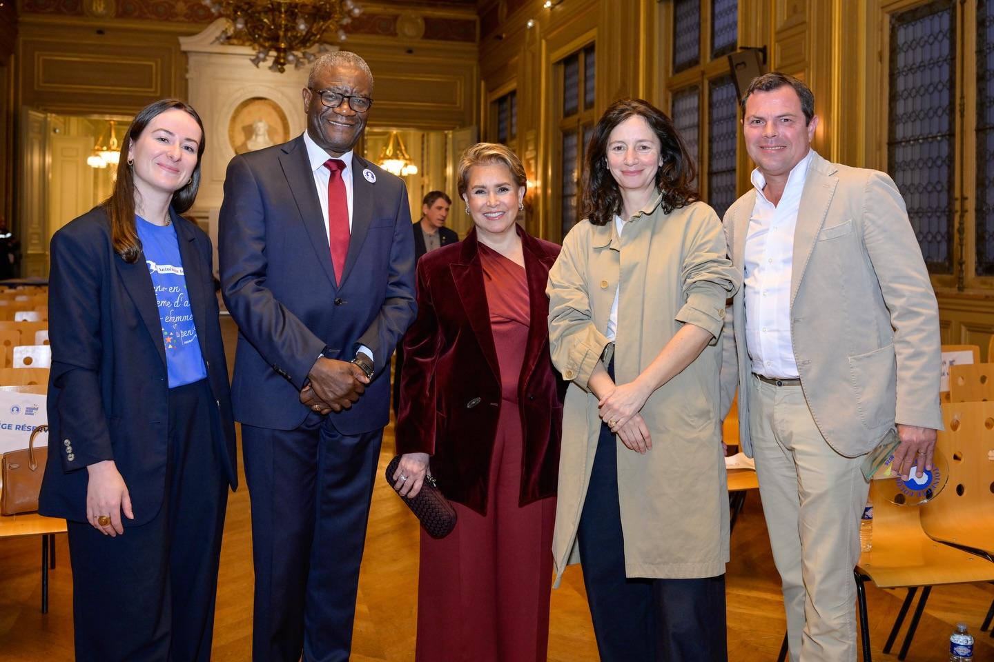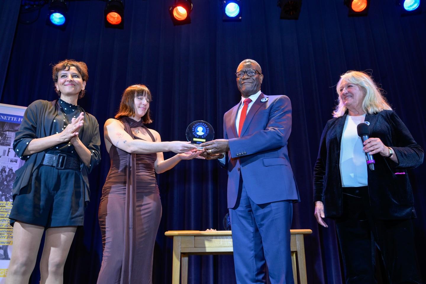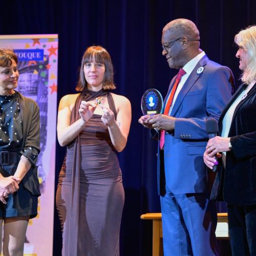 Prix « S’engager » : le Dr Denis Mukwege, Prix Nobel de la Paix, pour son combat inlassable contre les violences sexuelles en temps de guerre et son engagement aux côtés des survivantes. Le prix a été remis par Charlotte de Turckheim et Najat Vallaud-Belkacem.