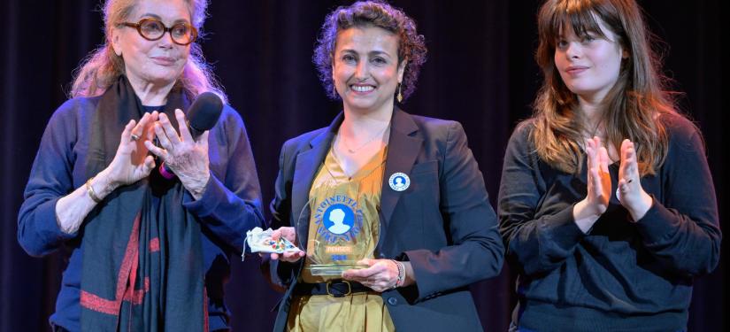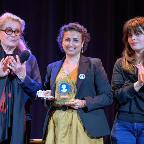 Prix « Penser » : Nabila Bouatia-Naji, chercheuse pionnière, pour ses travaux majeurs sur la santé cardiovasculaire des femmes. Le prix a été remis par Catherine Deneuve et sa petite fille Anna Biolay.