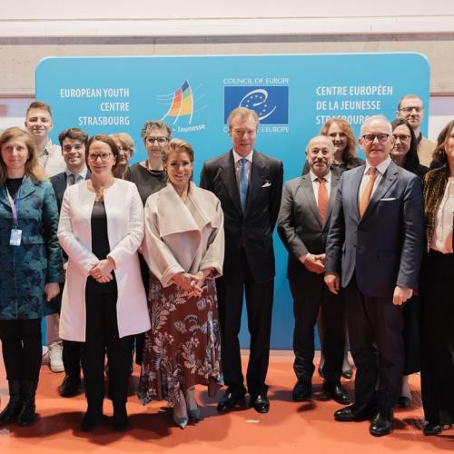 Le Grand-Duc et la Grande-Duchesse se sont ensuite entretenus avec Marc Cools, Président du Congrès des Pouvoirs locaux et régionaux. Puis ils ont alors rejoint le Centre européen de la Jeunesse pour une réunion interactive sur le travail et les priorités des jeunes. À l’agenda figuraient notamment le label qualité des centres, l’éducation aux droits humains et la coopération internationale.