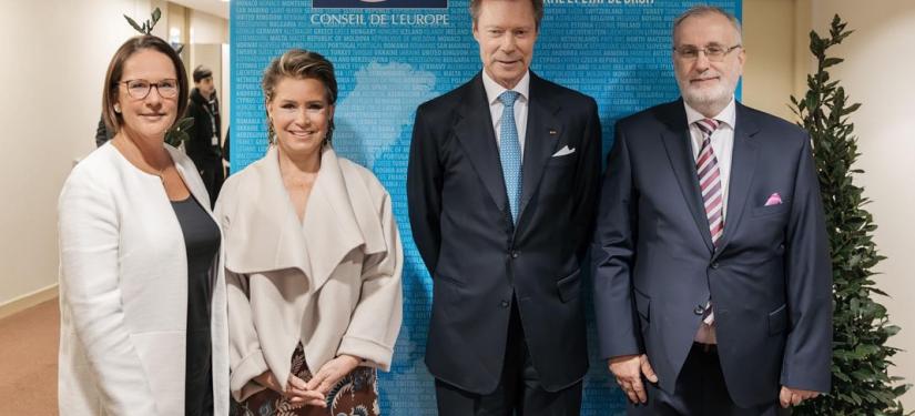 En ouverture de leur deuxième jour à Strasbourg, le Couple grand-ducal a assisté, ce jeudi, en compagnie de la Ministre Yuriko Backes et du Secrétaire général du Conseil de l’Europe, Alain Berset, à la conférence « Facing the Future with Confidence, Building on a quarter century of Expérience ».