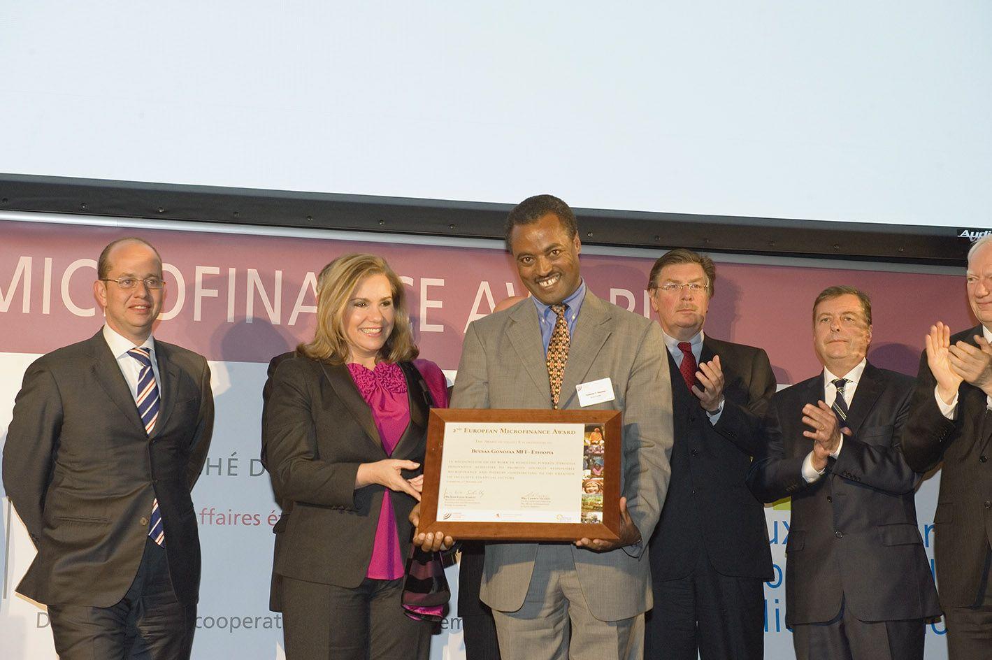 Le prix doté de 100.000 euros et récompensant des initiatives contribuant à l'amélioration de la performance sociale de la microfinance, revient cette année à Teshome Yohannes Dayesso qui dirige l'institution de microfinance éthiopienne Buusaa Gonofaa qui appuie les populations rurales et isolées de la région Oromo, régulièrement frappée par la sécheresse.