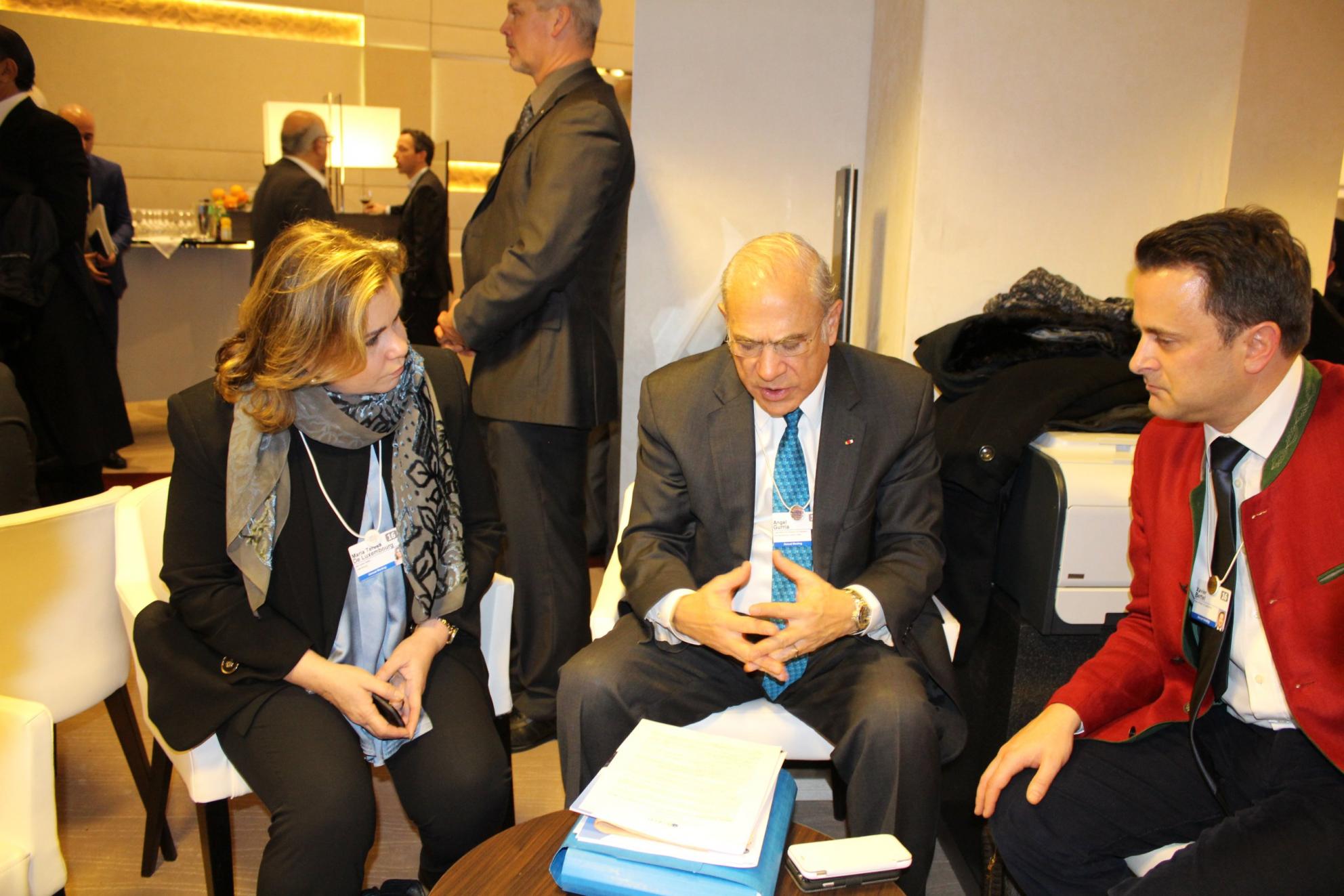 Le vendredi 22 janvier 2016, lors d'un petit déjeuner de travail, S.A.R. la Grande-Duchesse et le Premier ministre, Xavier Bettel, ont présenté les multiples facettes ainsi que les atouts du Grand-Duché de Luxembourg à un parterre de grands dirigeants d'entreprises internationales.