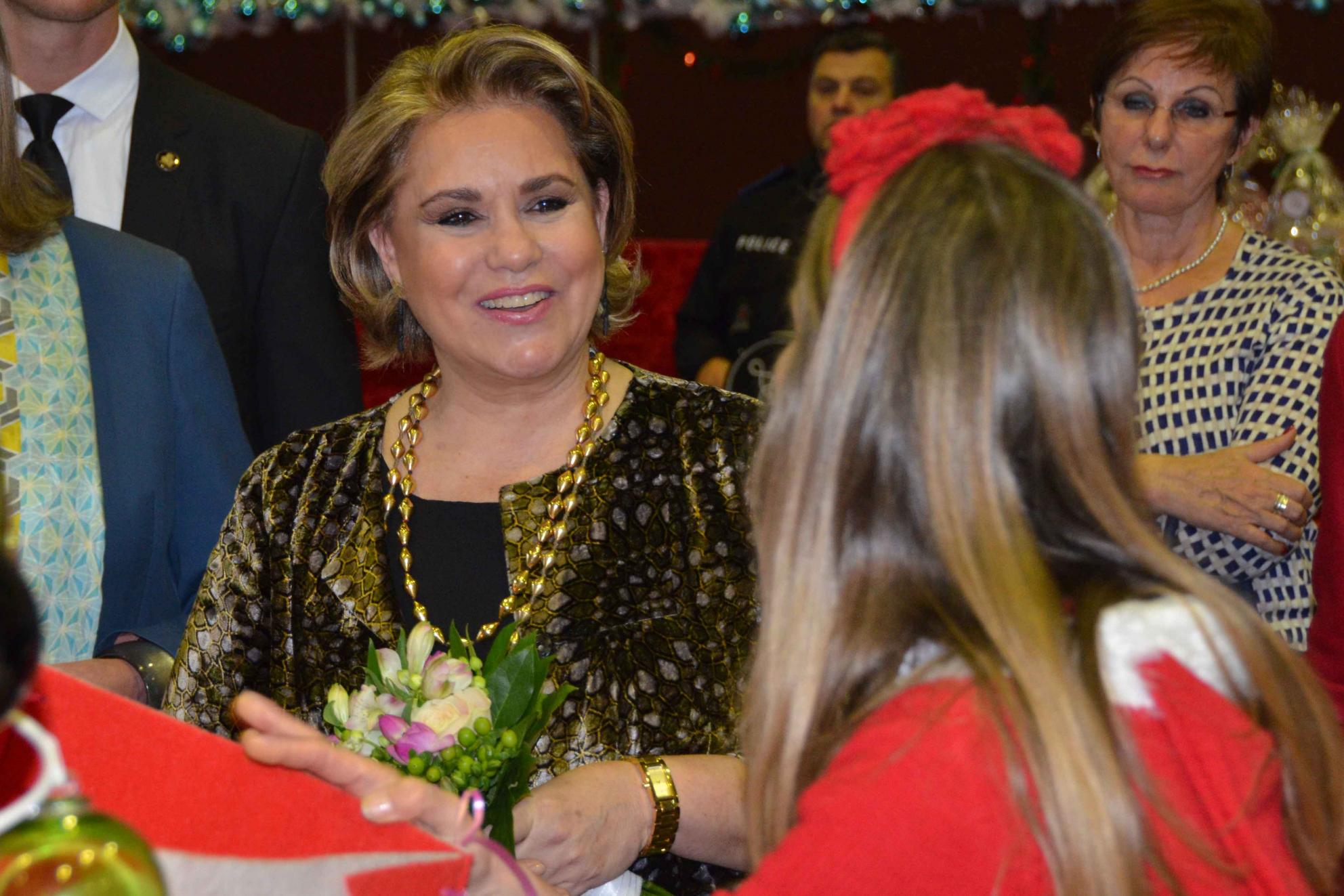 S.A.R. la Grande-Duchesse est entourée par, de g. à dr. Mme Lydie Polfer, bourgmestre de la Ville de Luxembourg; M. Gilles Dhamen, directeur solidarité internationale; Monsieur Marc Crochet, directeur général adjoint de la Croix-Rouge, Mme Manou Hoss, membre du conseil d'administration; Mme Rita Krombach, Vice-présidente de la Croix-Rouge et présidente de la section locale de Luxembourg-Ville
