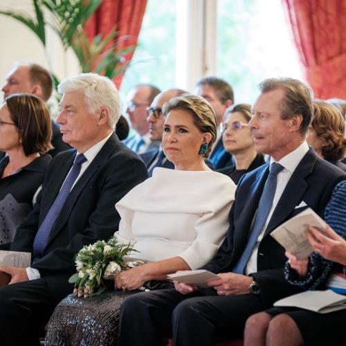LL.AA.RR. le Grand-Duc et la Grande-Duchesse ont célébré les 80 ans de la libération de la ville de Luxembourg lors d’une cérémonie commémorative au Cercle municipal. Ils ont été accueillis par la bourgmestre de Luxembourg, Lydie Polfer, qui a rendu hommage aux vétérans de la Seconde Guerre mondiale.