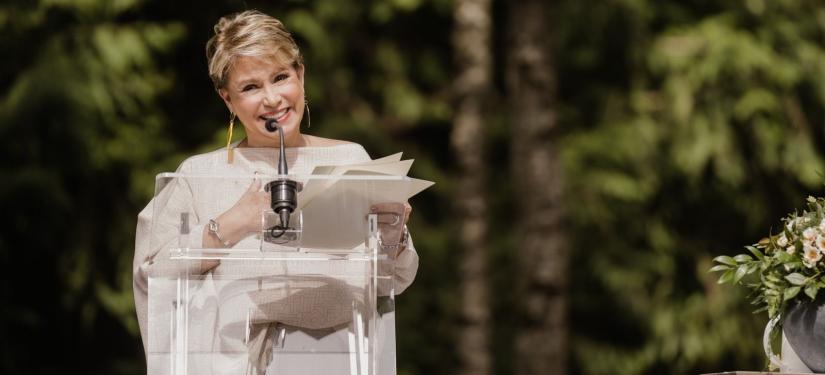 « Offrir cette rose aux survivantes est une promesse qui se renouvellera chaque année lorsqu’elle éclorera, elle nous évoquera cette promesse de regarder les survivantes comme des femmes belles, dignes et courageuses.»