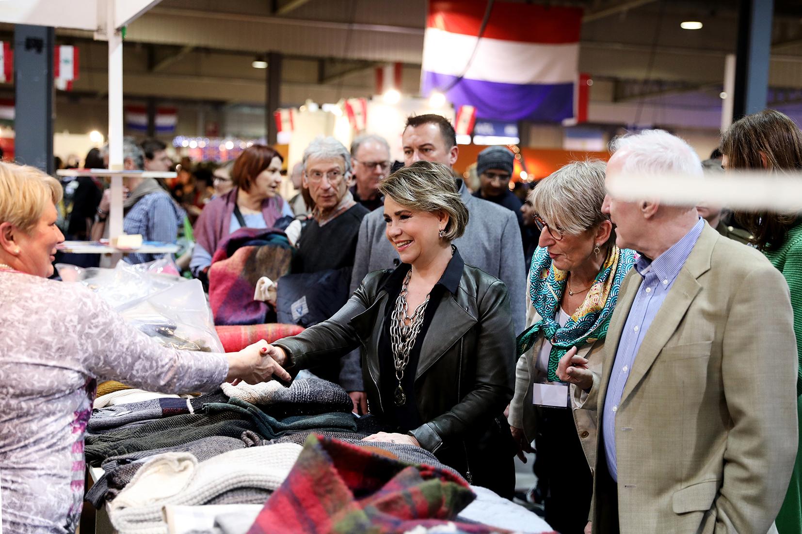 S.A.R. la Grande-Duchesse est entourée (de gauche à droite) par Mme Lydie Polfer, bourgmestre de la Ville de Luxembourg; Mme Erika Ehrhard, présidente Bazar International Luxembourg; Mme Isabel Wiseler-Lima, échevin de la Ville de Luxembourg; M. Xavier Bettel, Premier ministre, ministre d'Etat; M. Gauthier Destenay, époux du Premier ministre ; Mme Carmen Decalf, Vice-présidente Bazar International Luxembourg; M. Fernand Etgen, président de la Chambre des députés.