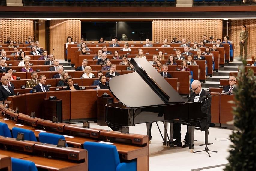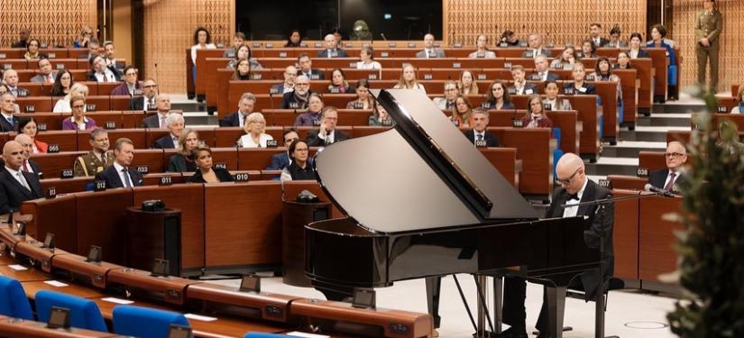 Le pianiste luxembourgeois Jean Muller était au clavier pour célébrer la Présidence. Au programme : « Clair de Lune » de Beethoven ; « Barcarolle N°3 » du compositeur luxembourgeois Ivan Boumans ; « Liebestraum N°1 » « Hohe Liebe » de Liszt ; La Polonaise « Héroïque » de Chopin.