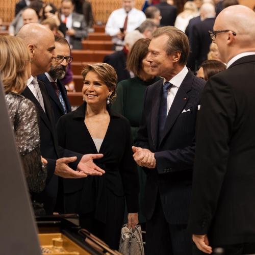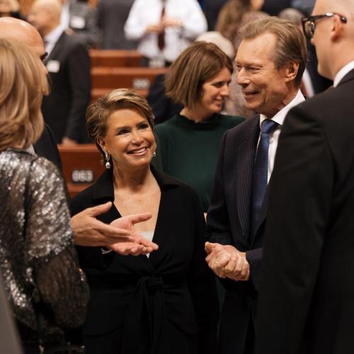 LL.AA.RR. le Grand-Duc et la Grande-Duchesse ont participé, ce jeudi soir au Palais de l’Europe à Strasbourg, au concert de lancement de la Présidence luxembourgeoise du Comité des Ministres du Conseil de l’Europe. Ils étaient accompagnés par le Secrétaire général du Conseil, le Suisse Alain Berset.