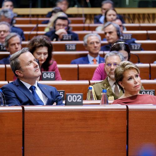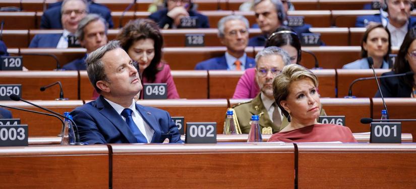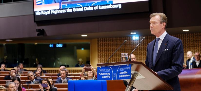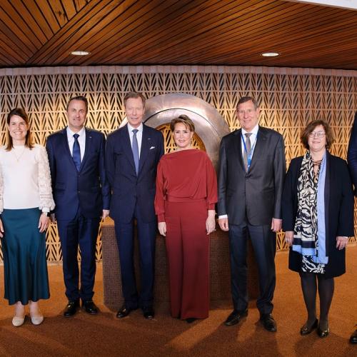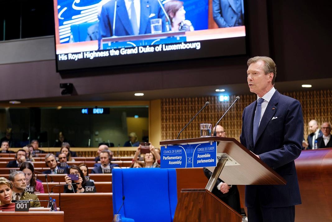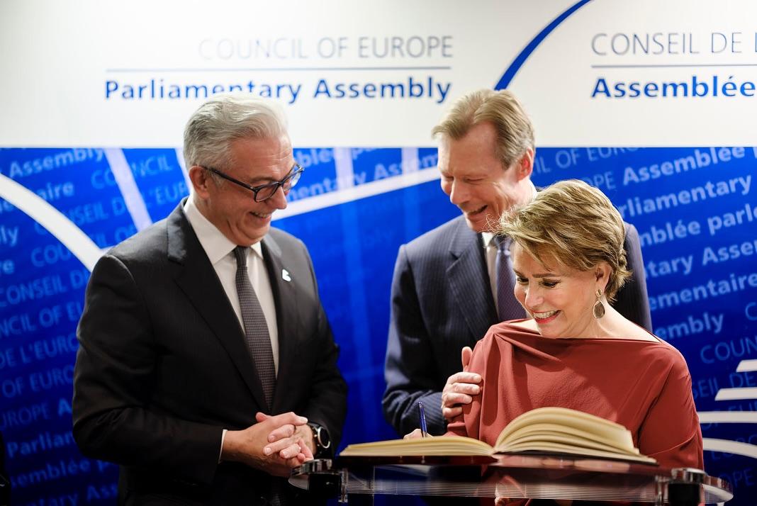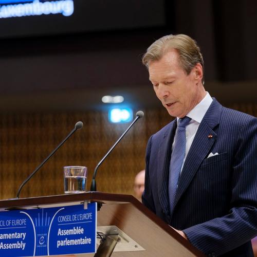 LL.AA.RR. le Grand-Duc et la Grande-Duchesse, accompagnées du Ministre Xavier Bettel, ont retrouvé, ce mercredi, le Conseil de l’Europe à Strasbourg. Alors que la 8e Présidence luxembourgeoise du Comité des Ministres est sur le point de s’achever, le Chef de l’État s’est adressé devant l’assemblée parlementaire pour défendre le rôle vital du Conseil et, plus globalement, des institutions européennes et internationales pour assurer la Paix et les Droits de l’Homme face à un contexte particulièrement difficile.