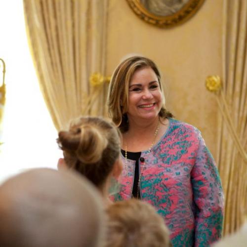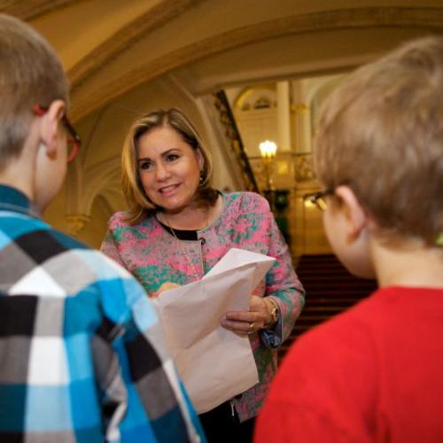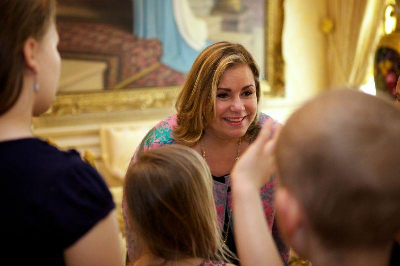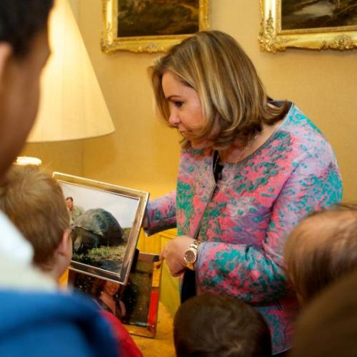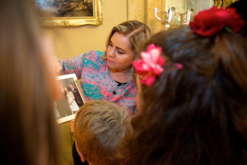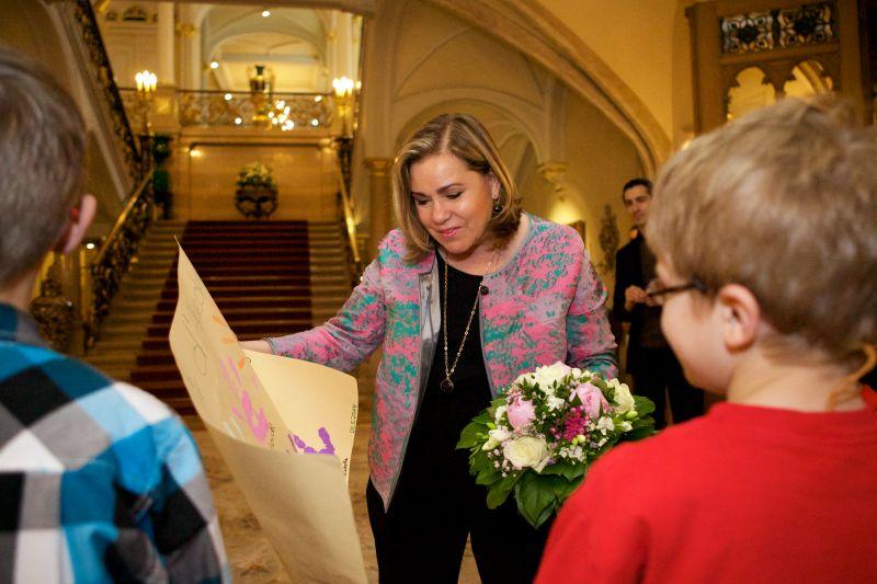 En plus des échanges privilégiés avec ses hôtes, la visite des enfants au Palais grand-ducal témoigne de la volonté de S.A.R. la Grande-Duchesse d’offrir aux petits patients un moment récréatif dans un cadre merveilleux et qui s’inscrit dans le prolongement d’une précédente visite des patients de l’école de la Kannerklinik, hôpital pédiatrique du Centre Hospitalier de Luxembourg, effectuée au Palais grand-ducal en mai 2011. Le programme, spécialement conçu pour répondre aux attentes et désirs des enfants commence dès leur arrivée solennelle par le portail principal du Palais et se poursuit dans le hall d’honneur où la Grande-Duchesse souhaite accueillir personnellement ses invités. Suit une visite "à la découverte du Palais" guidée et commentée par la Grande-Duchesse. Lors du goûter, organisé dans la salle de la Balance, les enfants, très intéressés d’en savoir plus sur la vie "au Palais", ont saisi le moment afin de pouvoir poser nombre de questions à la Grande-Duchesse.