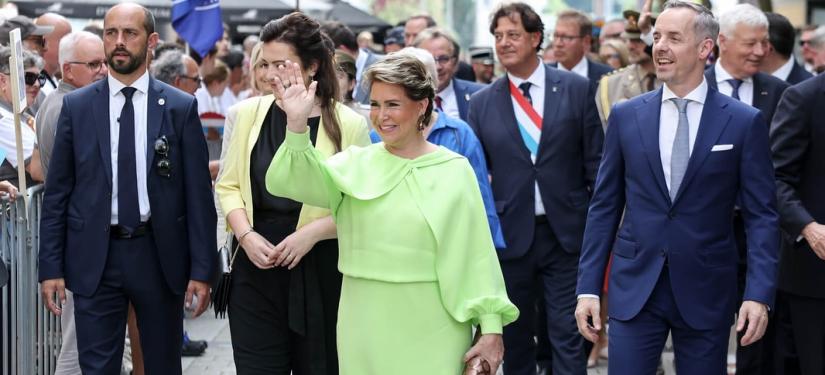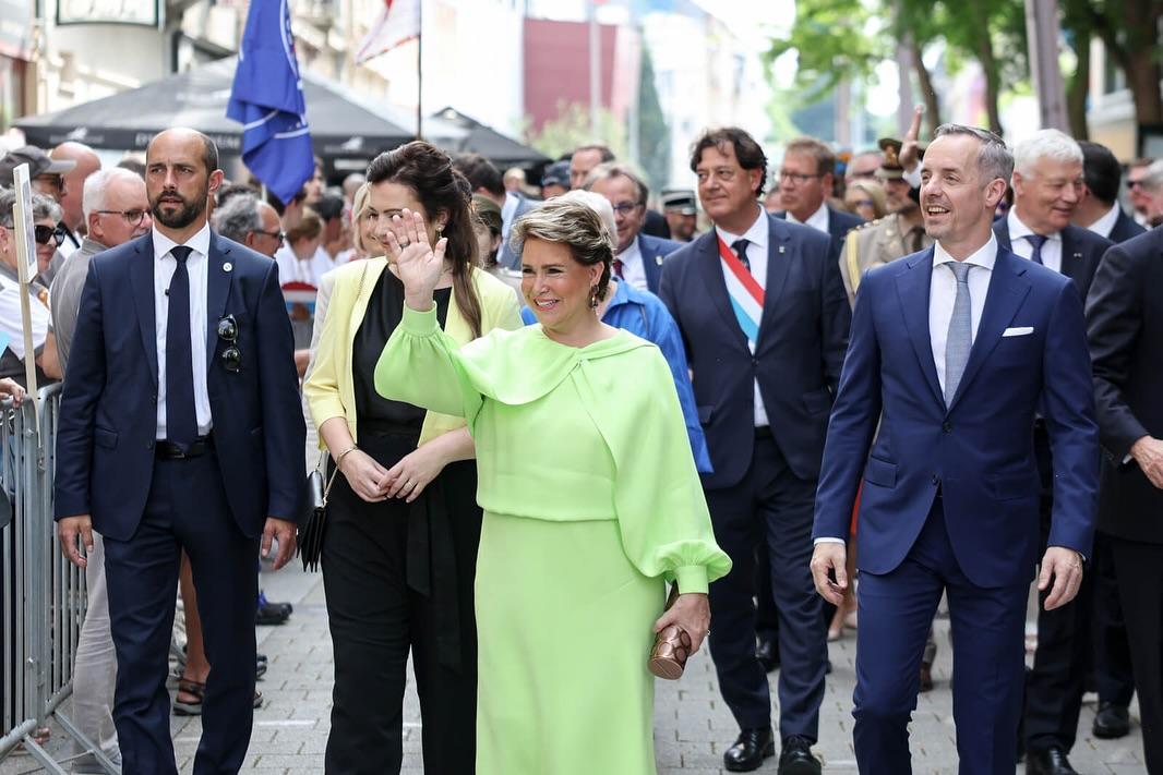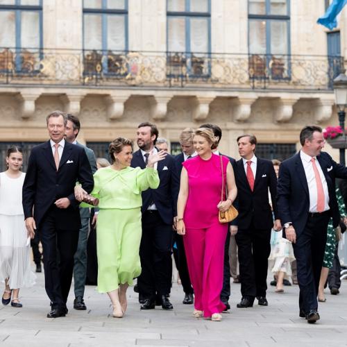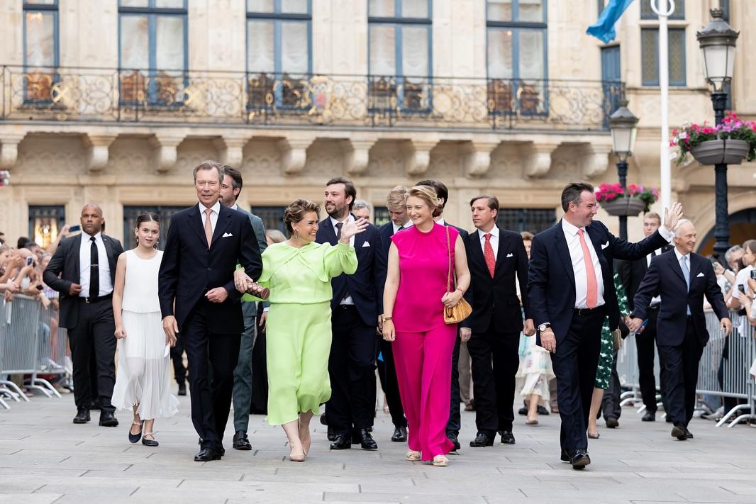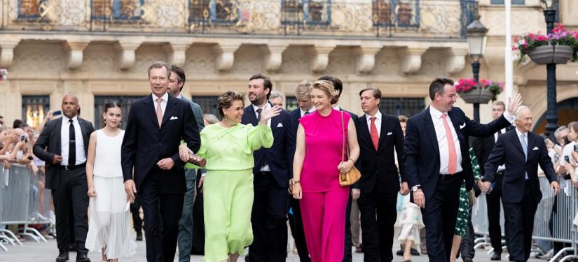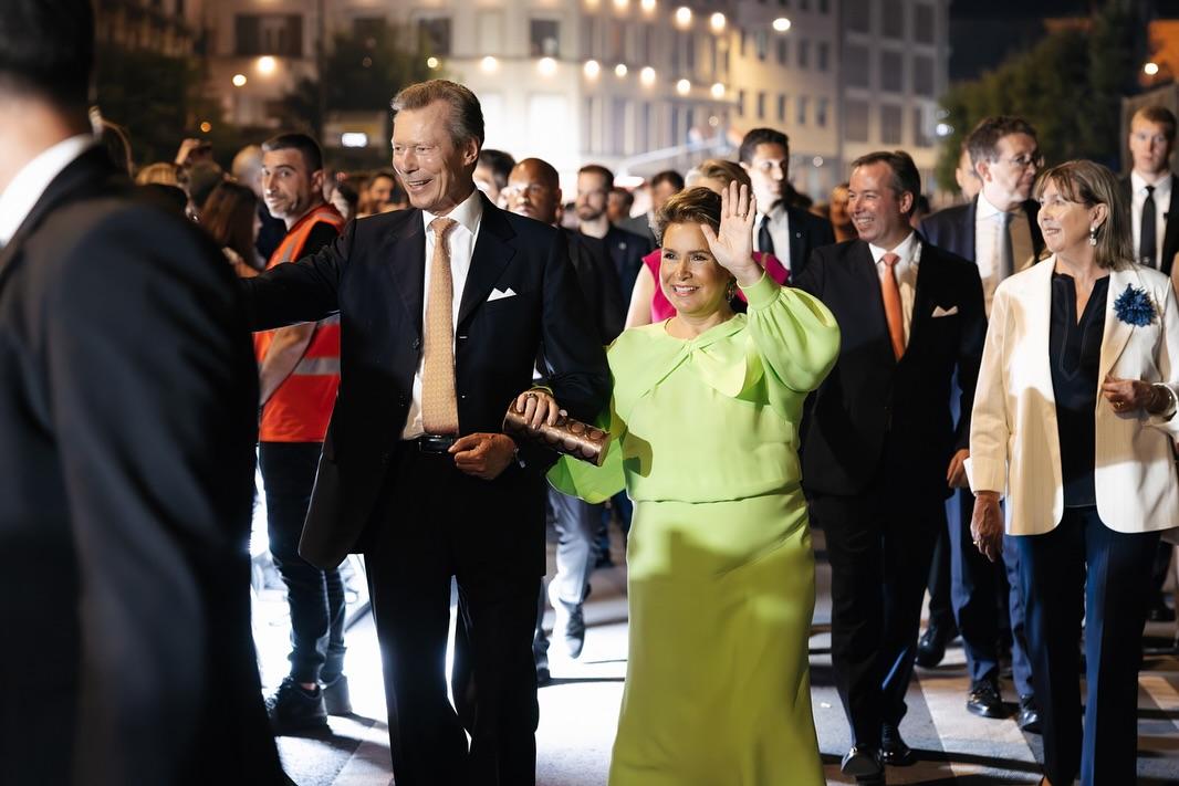 Sur la Place Guillaume II, la Famille grand-ducale a assisté, avec la Bourgmestre Lydie Polfer, à l’aubade de la Musique militaire suivie de la traditionnelle retraite aux flambeaux.