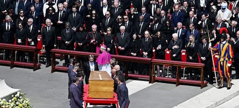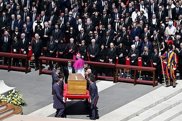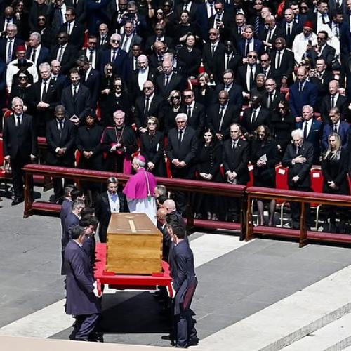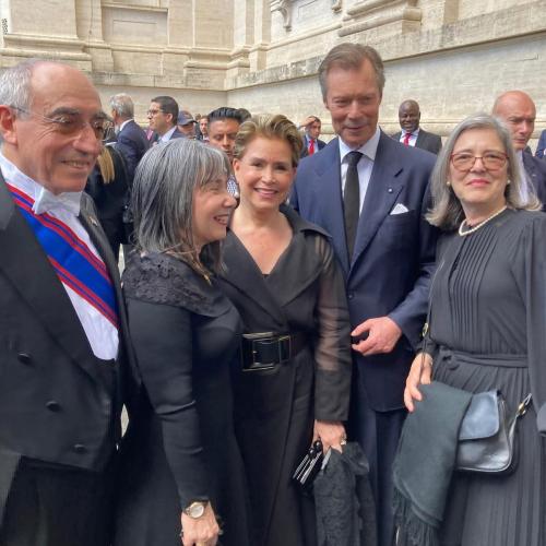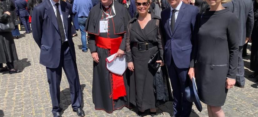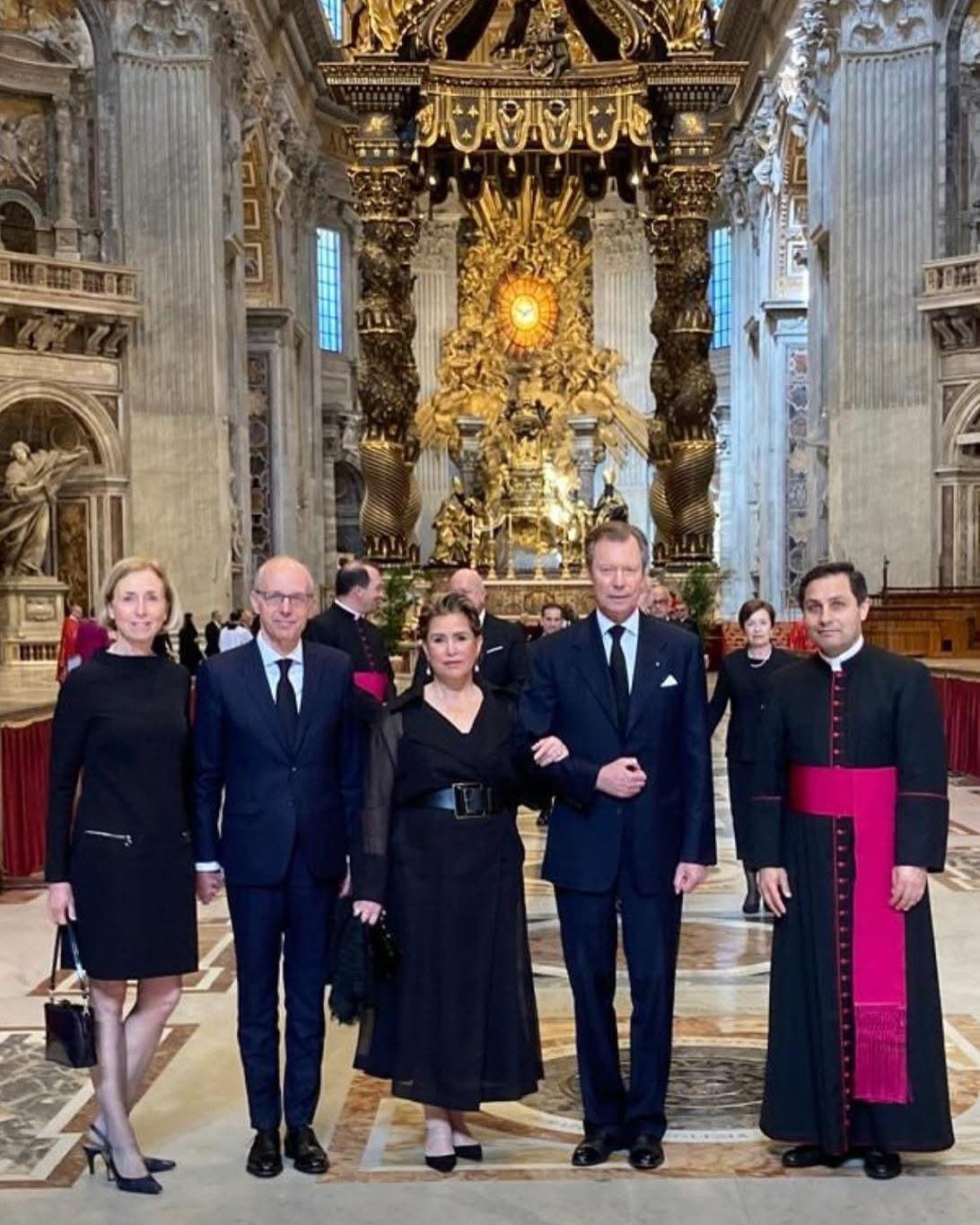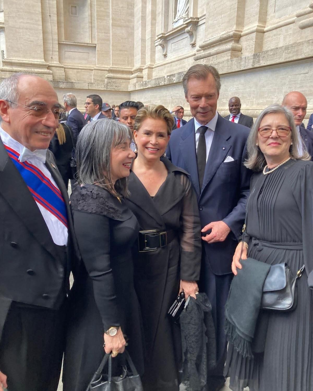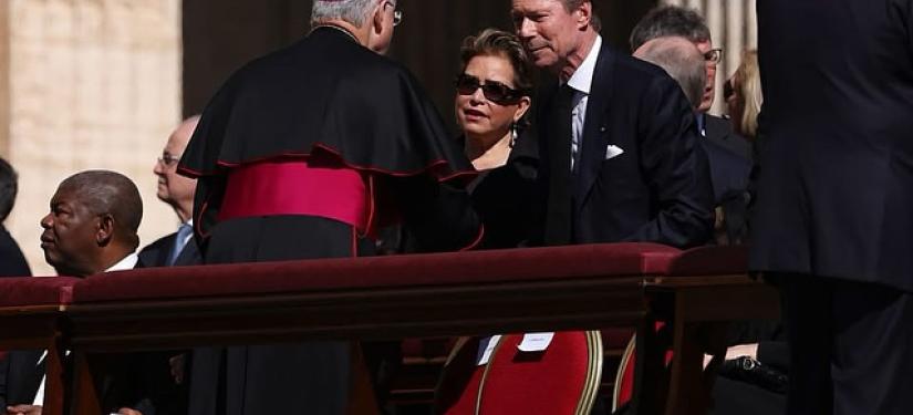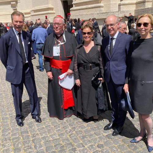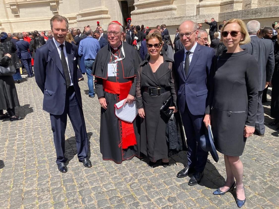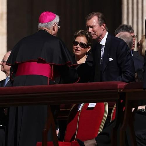 LL.AA.RR. le Grand-Duc et la Grande-Duchesse, accompagnées de M. Luc Frieden, Premier Ministre, et son épouse, ont assisté, ce samedi matin, sur le parvis de la Place Saint-Pierre à Rome, aux funérailles de S.S. le Pape François.