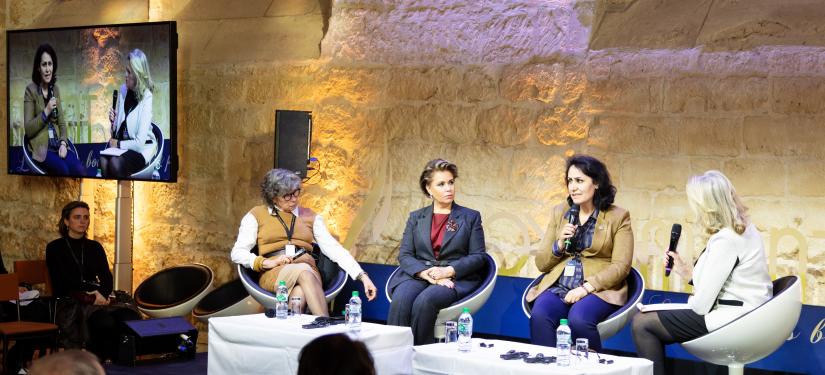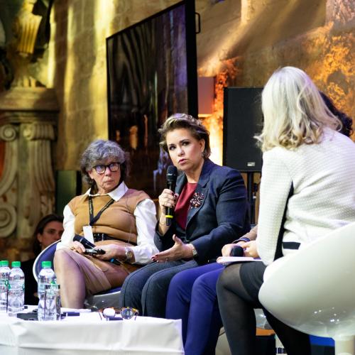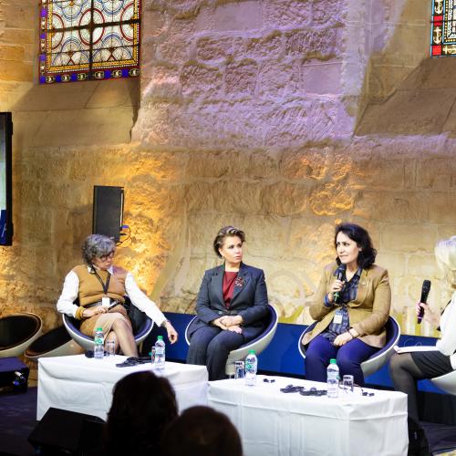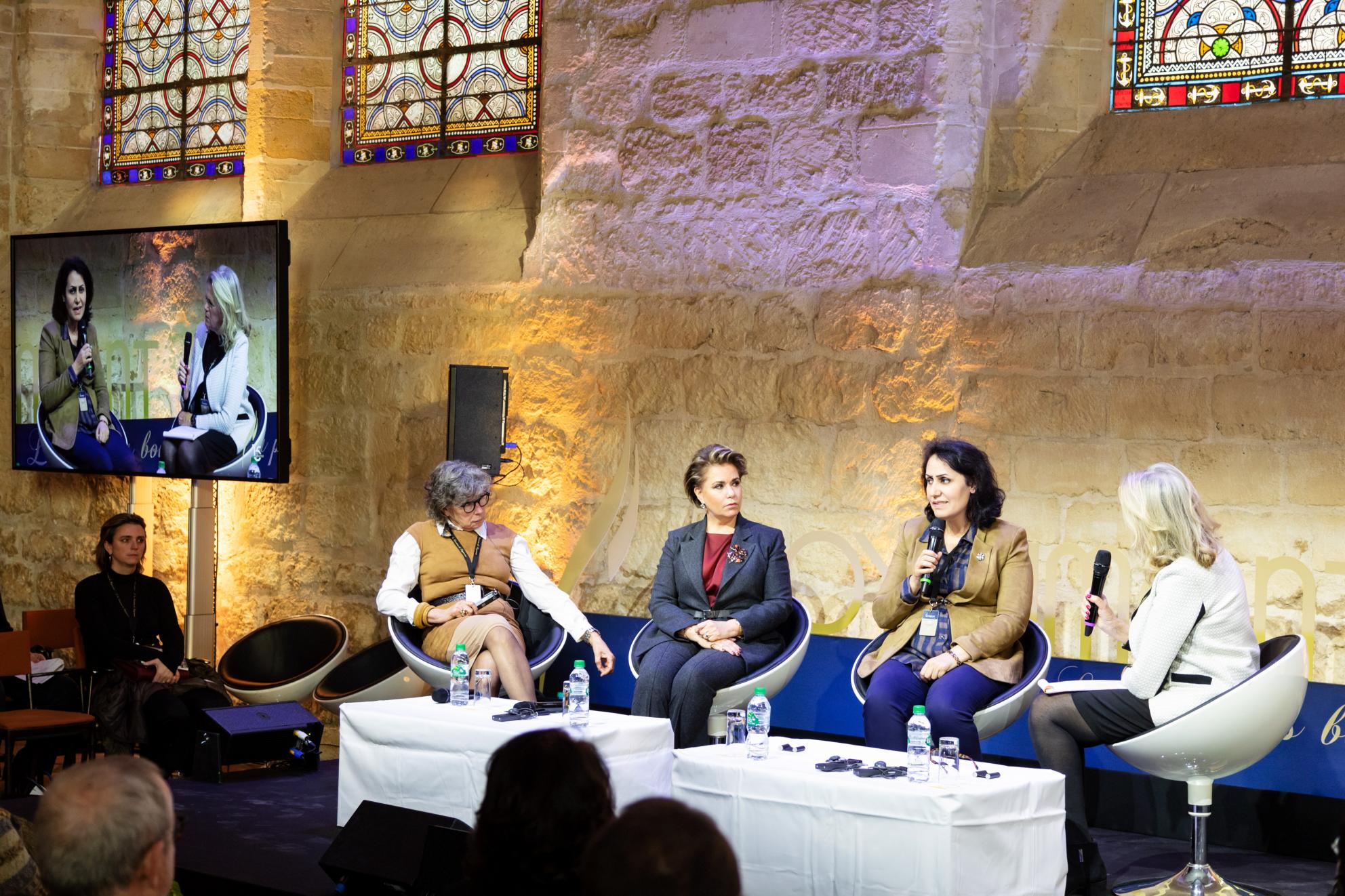 La Grande-Duchesse était l’une des trois intervenantes sur le sujet « Être une Femme, et victime » avec Madame Isabelle Thery, Vice-présidente du tribunal de grande instance de Melun et la médecin yézidi Dr Nagham Hasan. Dans son intervention, la Grande-Duchesse a soulevé les conséquences socio-économiques des viols dans les conflits armés et dans les zones sensibles. Elle a lancé l’appel de créer une alliance internationale autour des survivantes afin de leur obtenir reconnaissance et réparation.
