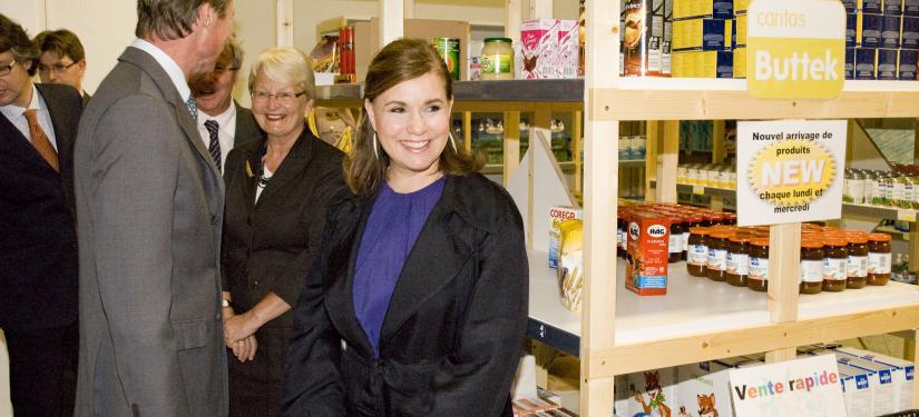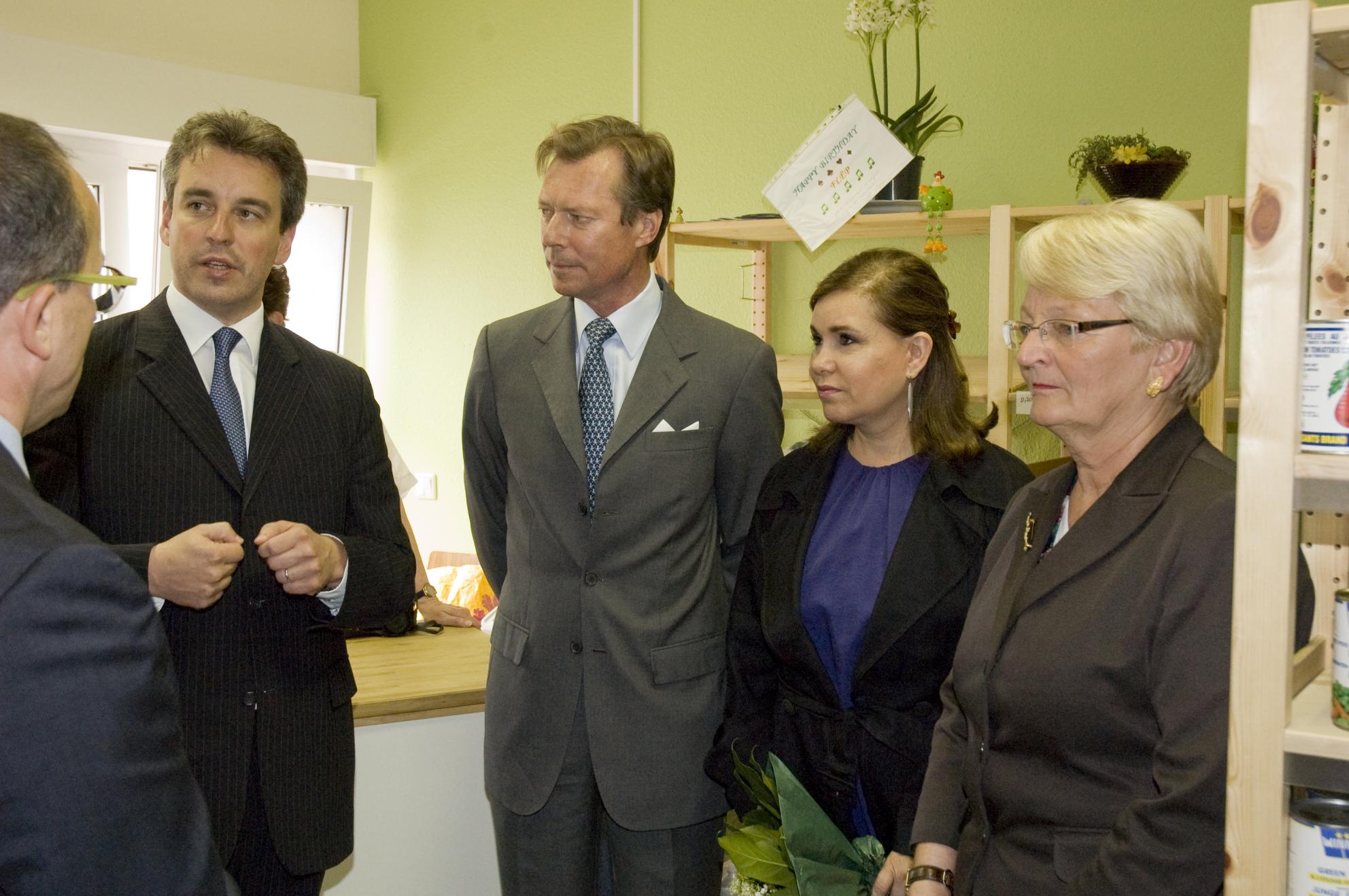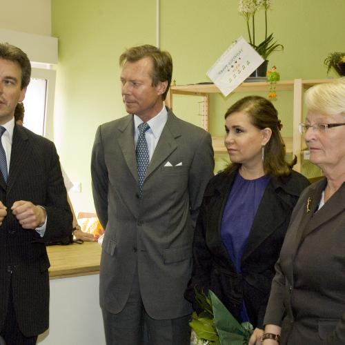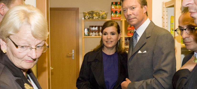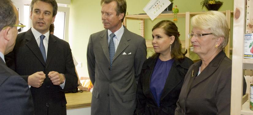 Leurs Altesses Royales le Grand-Duc et la Grande-Duchesse ont successivement visité les épiceries sociales "Croix-Rouge Buttek" à Differdange et "Caritas Buttek" à Esch-sur-Alzette, en présence de Madame Marie-Josée Jacobs, ministre de la Famille.