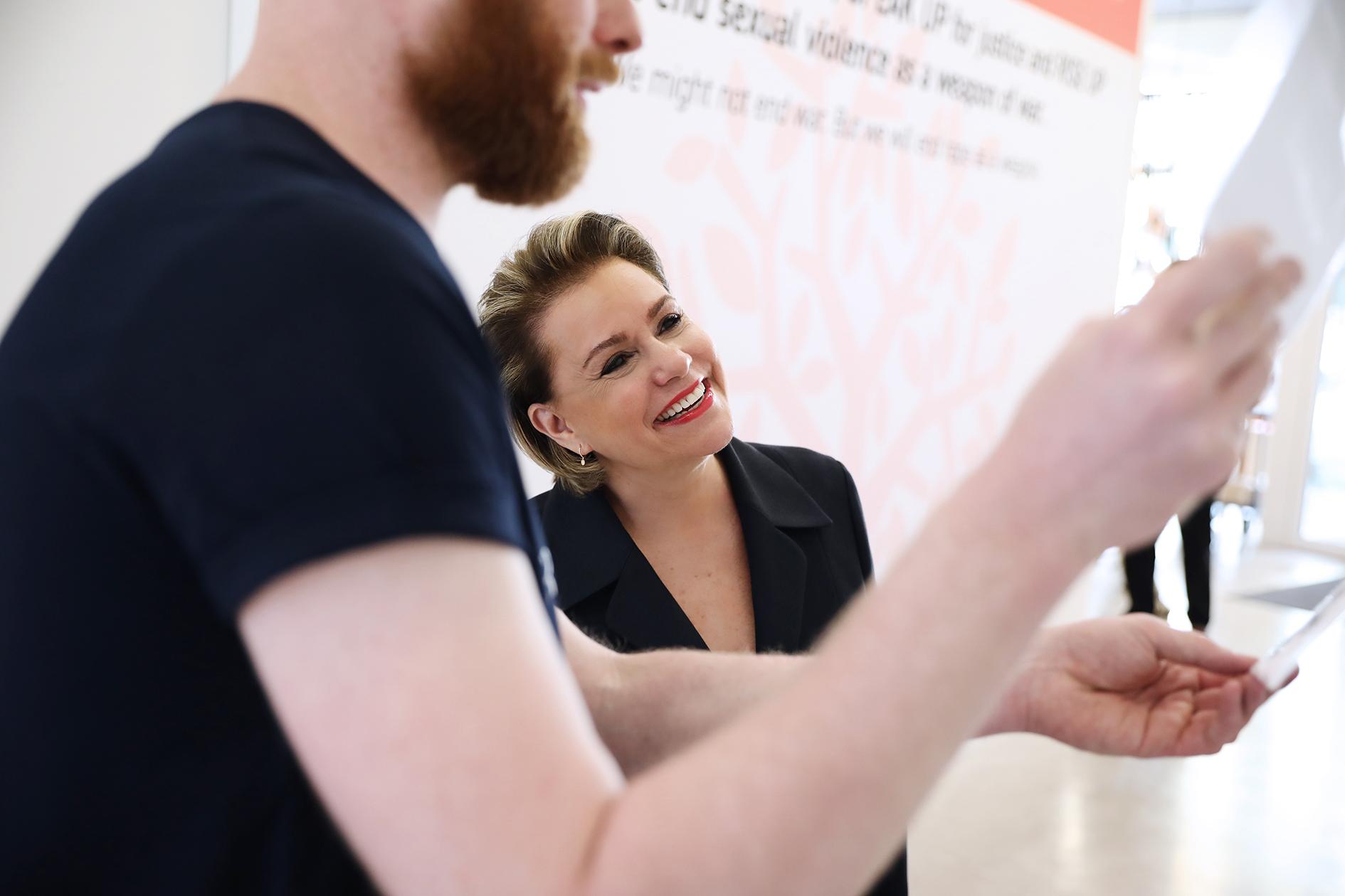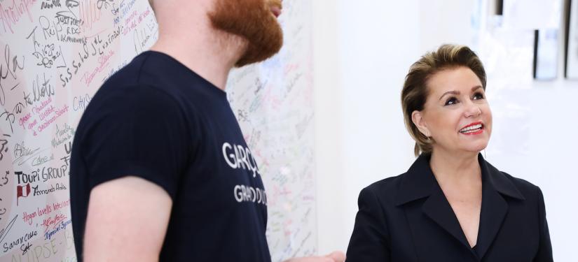 Durant cette visite, la Grande-Duchesse a parcouru l'exposition photographique d'art retraçant tous les moments forts du forum avant d'inaugurer un nouveau mur de signature.