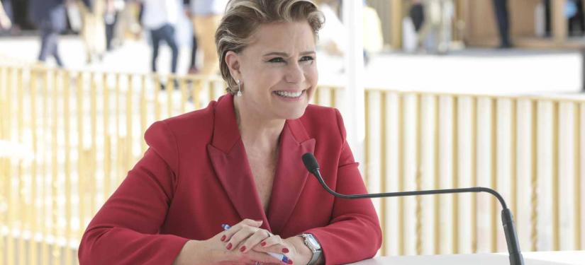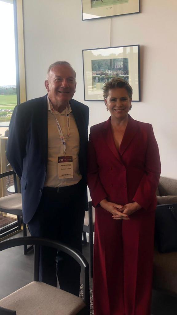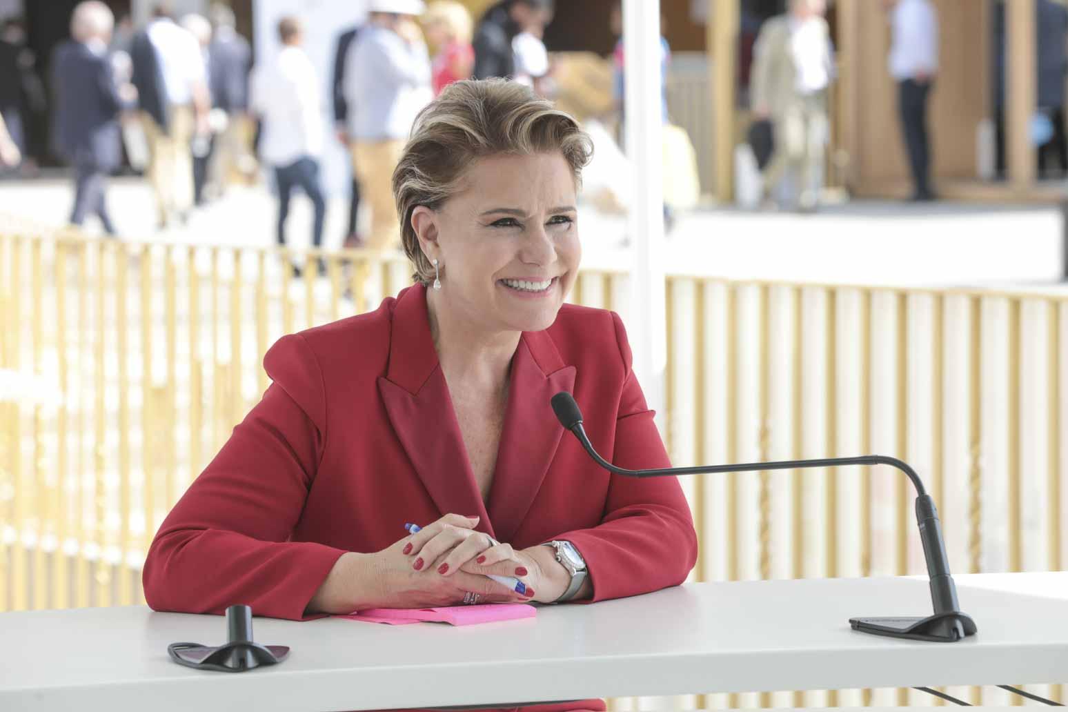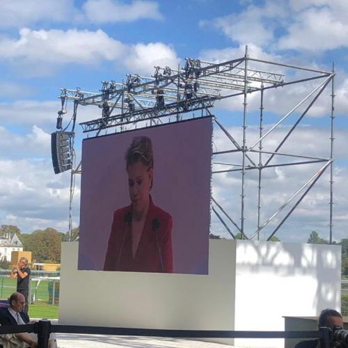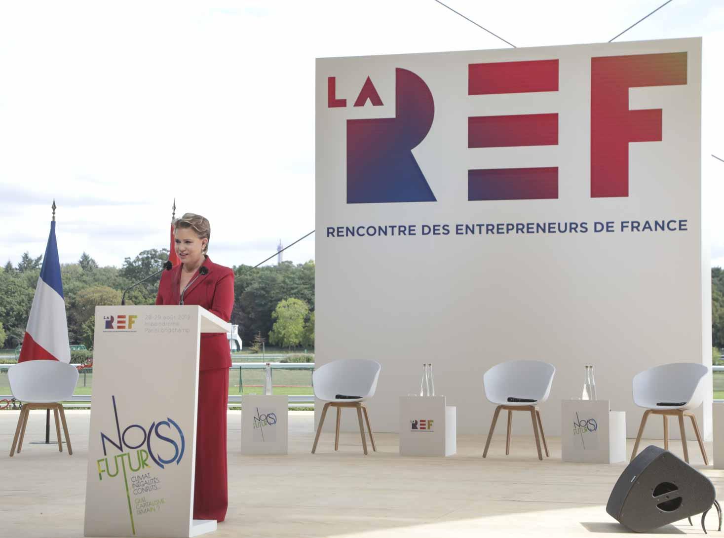 Après avoir été accueillie et avoir échangé avec M. Geoffroy Roux de Bézieux, actuel président du MEDEF, puis M. Pierre Gattaz, ancien président du MEDEF et président de Business Europe, la Grande-Duchesse a rejoint la grande scène afin d’y dérouler son discours.