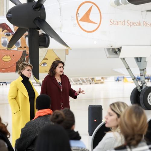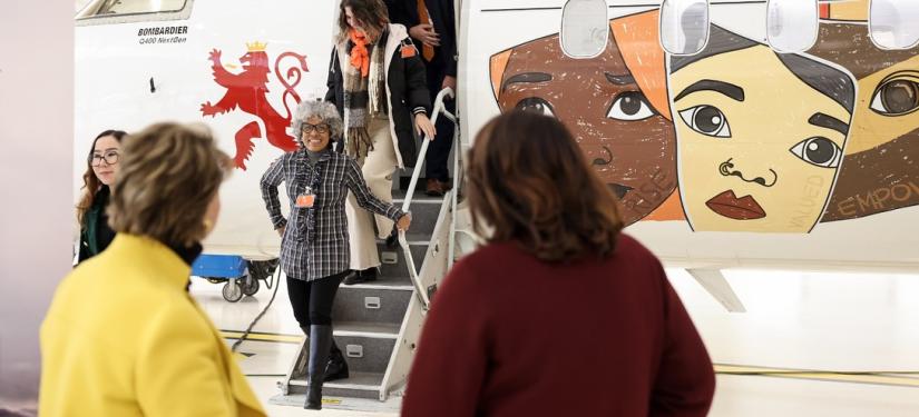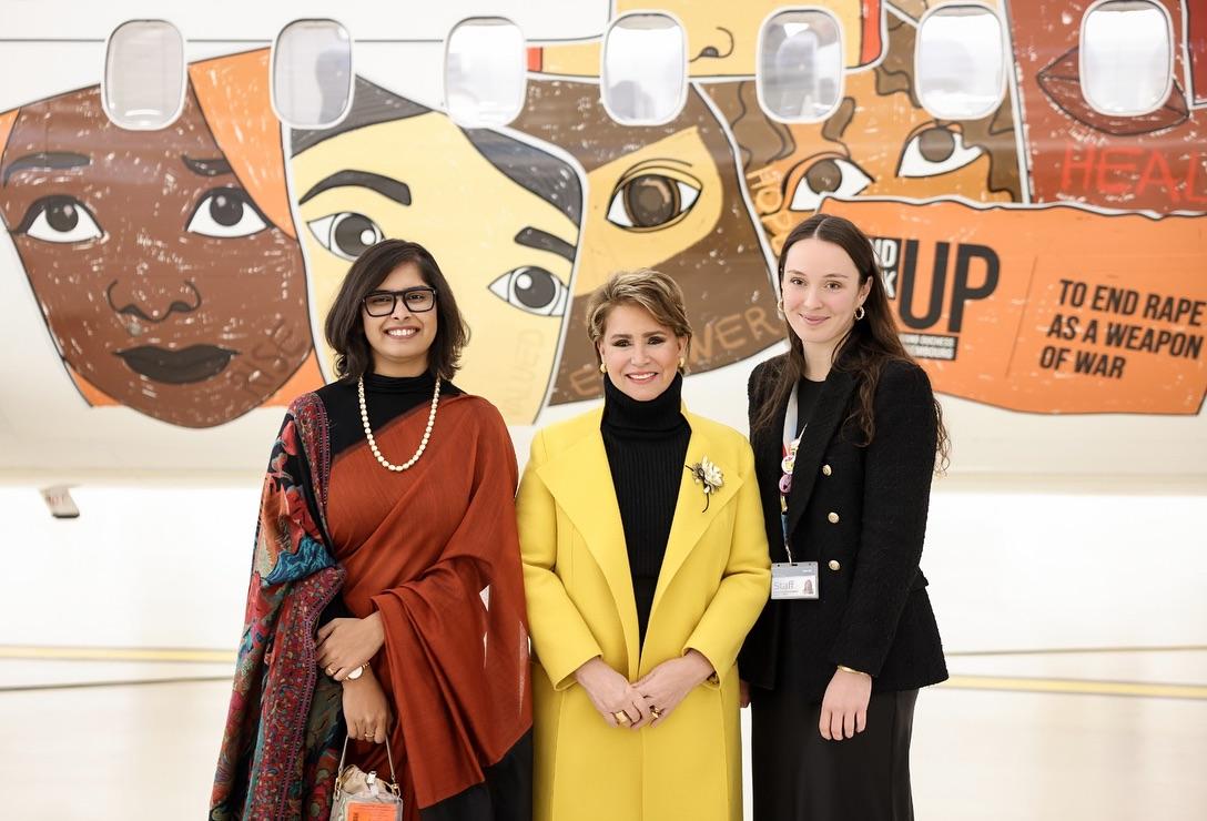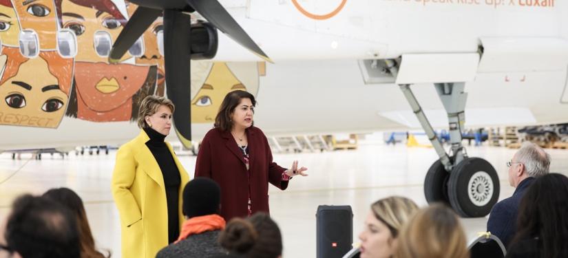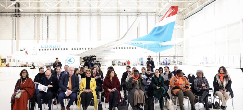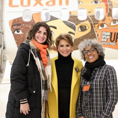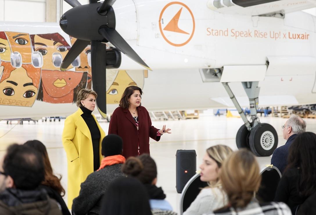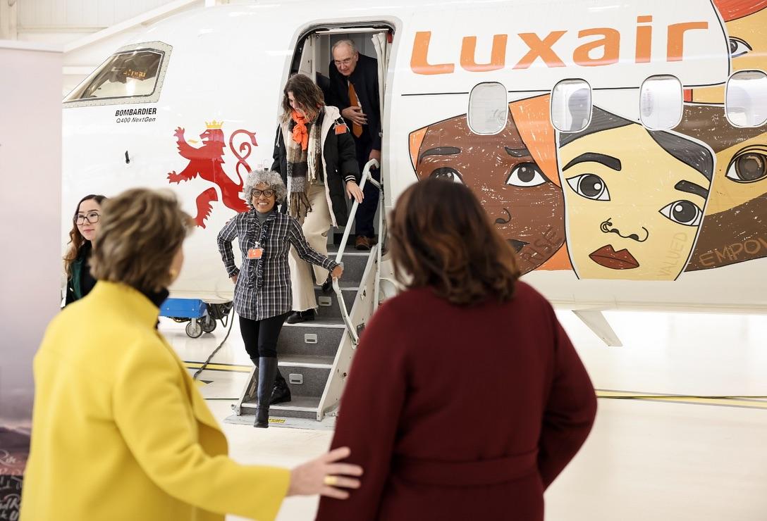 Un avion Luxair arborera fièrement les couleurs de Stand Speak Rise Up! et les visages des femmes victimes de violences dans le monde, survolant le continent pour éveiller les consciences et incarner l’espoir. Ce symbole est un rappel puissant que la lutte pour mettre fin au viol comme arme de guerre ne connaît aucune frontière.