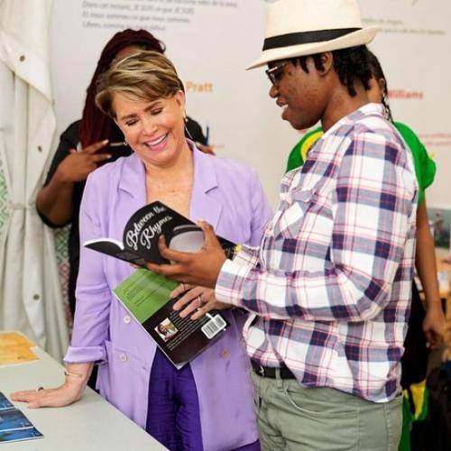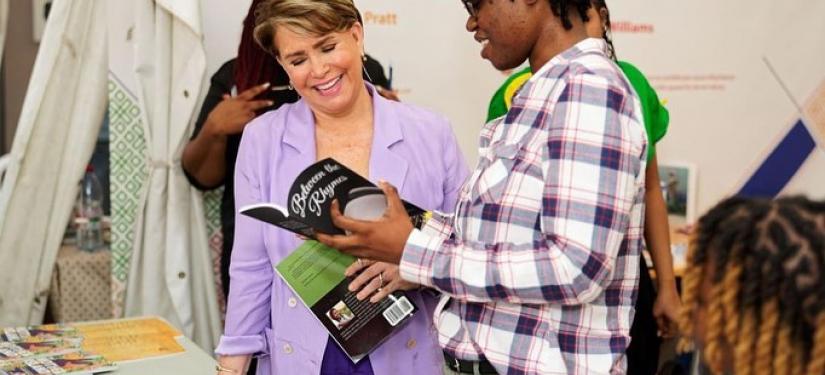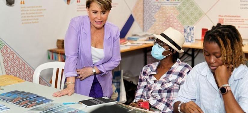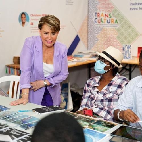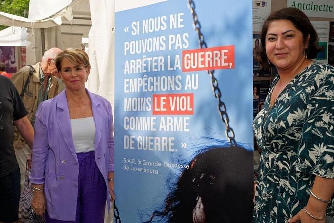 La Grande-Duchesse s’est ensuite rendue sur le stand des Éditions des femmes, lors d’une dédicace du livre audio « L’insolente de Kaboul » de Chékéba Hachemi. L’association Stand Speak Rise Up! était également à l’honneur sur le stand, l’occasion parler des combats et des projets de l’association.