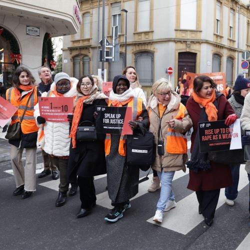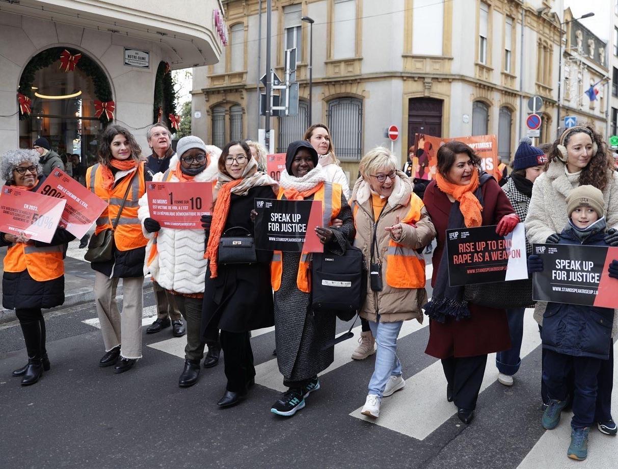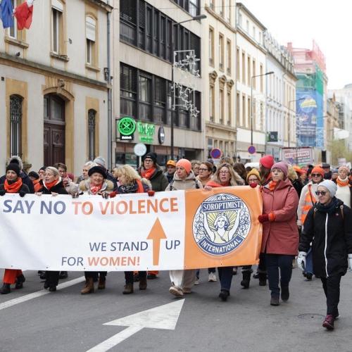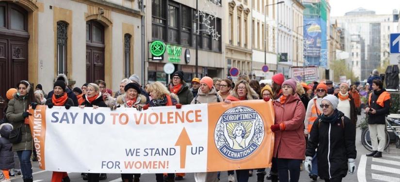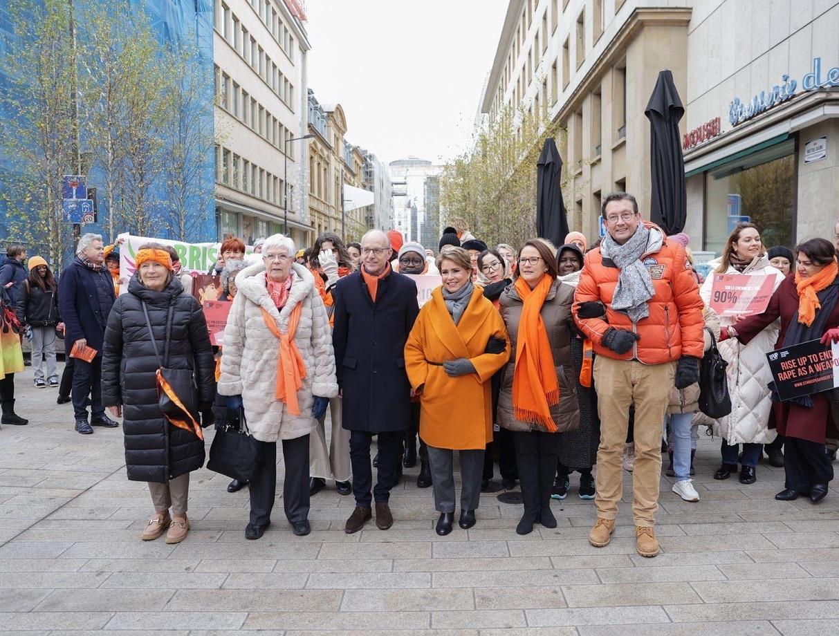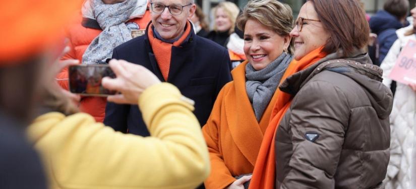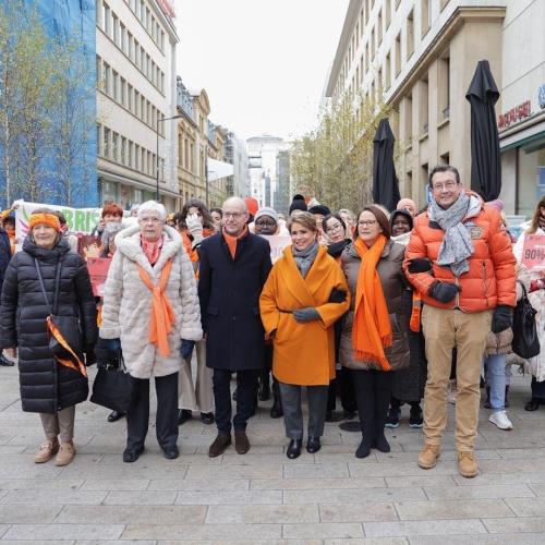 Dans le cadre de l’Orange Week, une grande marche organisée par le CNFL s’est tenue dans le centre de Luxembourg-ville pour dénoncer les violences faites aux femmes. S.A.R. la Grande-Duchesse a pris part à cet événement accompagnée par Luc Frieden, Premier ministre luxembourgeois, Yuriko Backes, ministre de l’égalité des chances, ainsi que Maurice Bauer, échevin de la Ville de Luxembourg, ainsi que Claudine Speltz, présidente du CNFL.