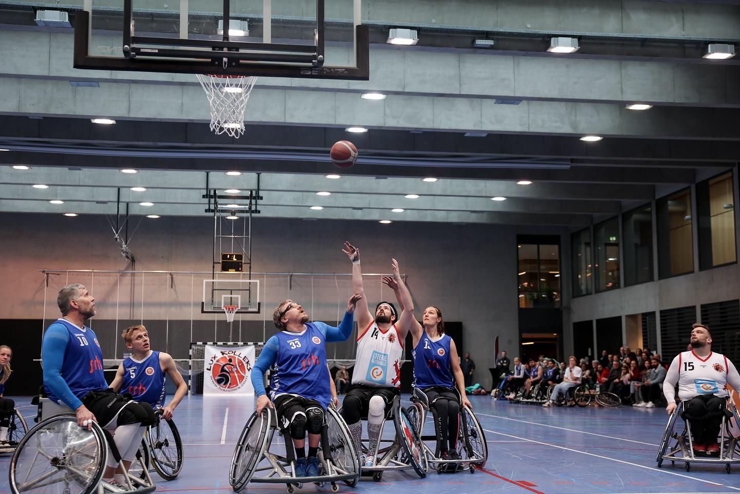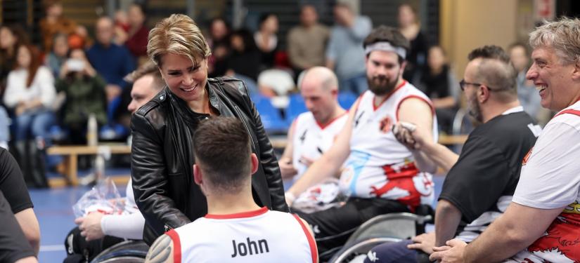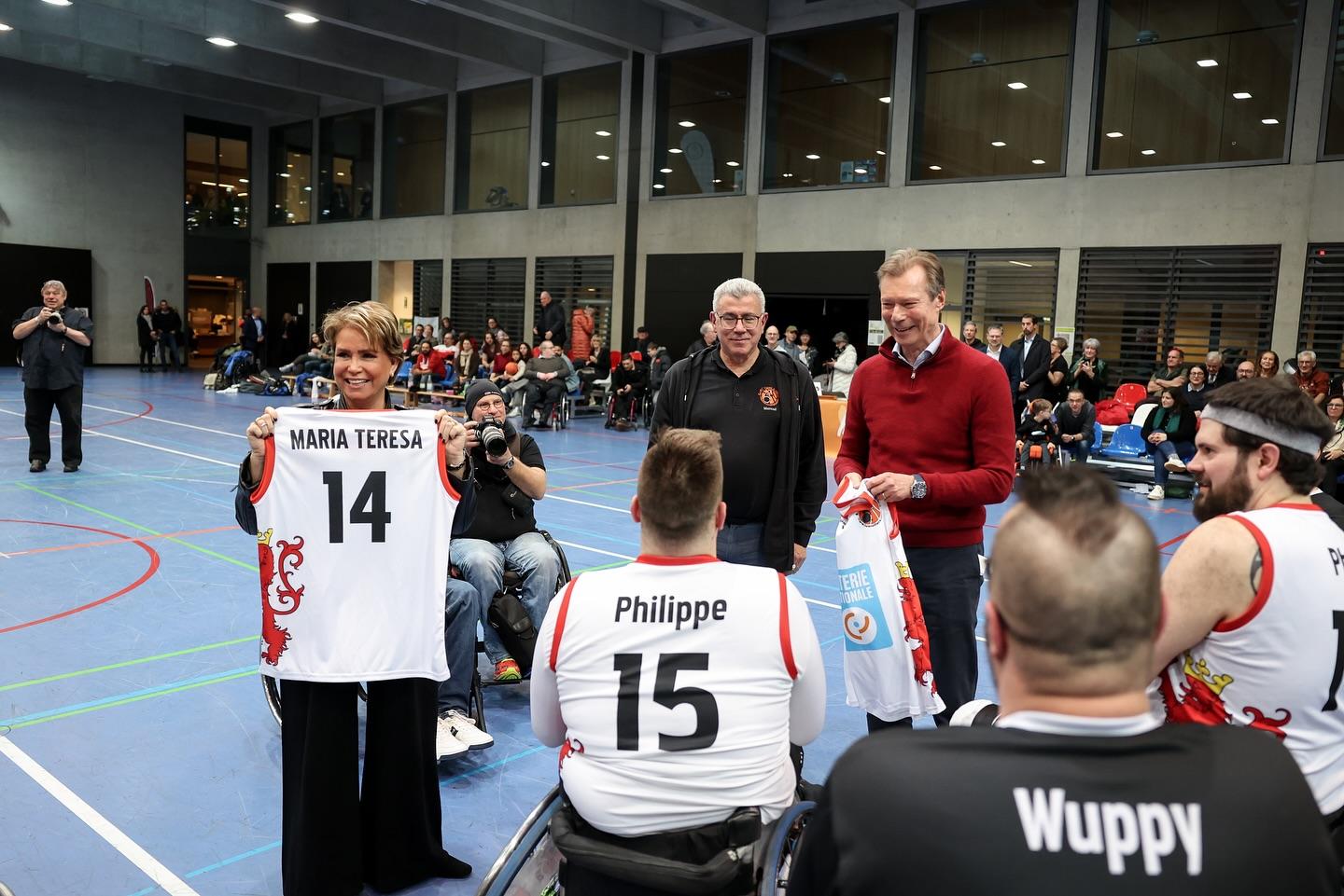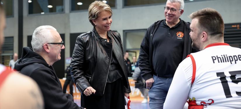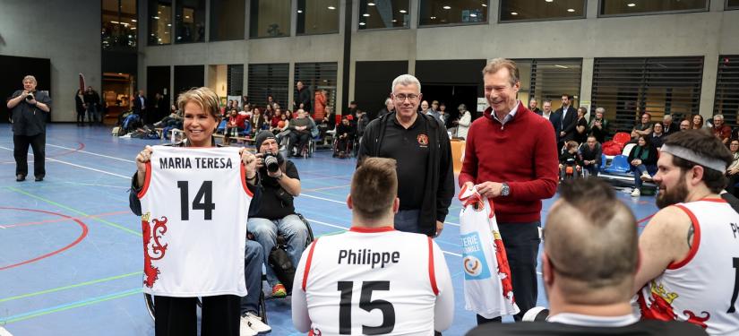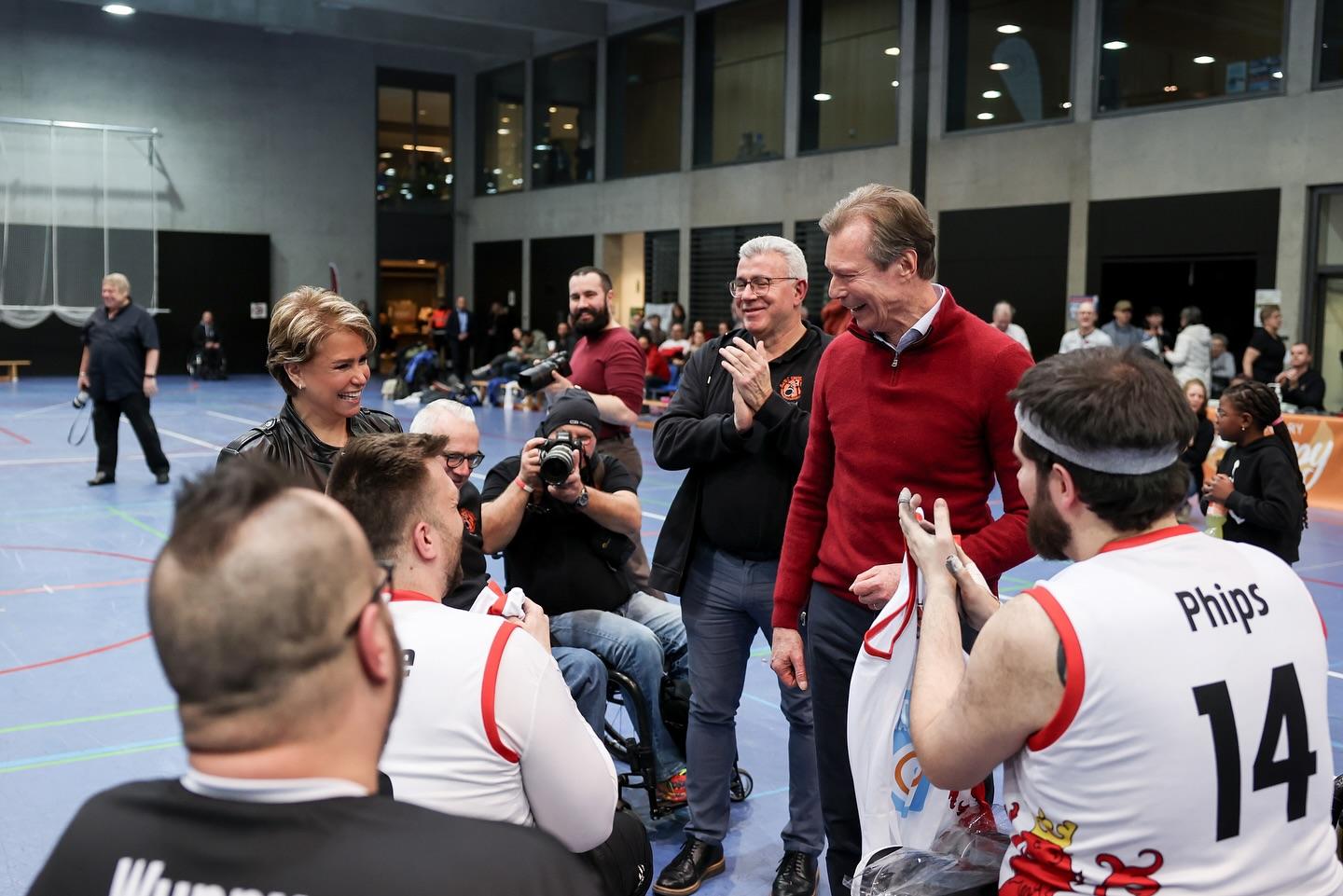 Le Couple grand-ducal a soutenu les basketteurs lors d’une rencontre en chaise roulante opposant « Lux Rollers 1 » (Luxembourg) et « SGK Rolling Chocolate Heidelberg » (Allemagne).
