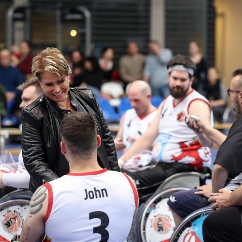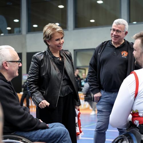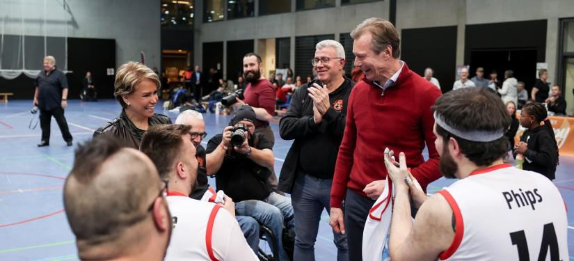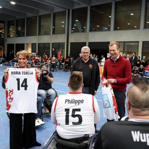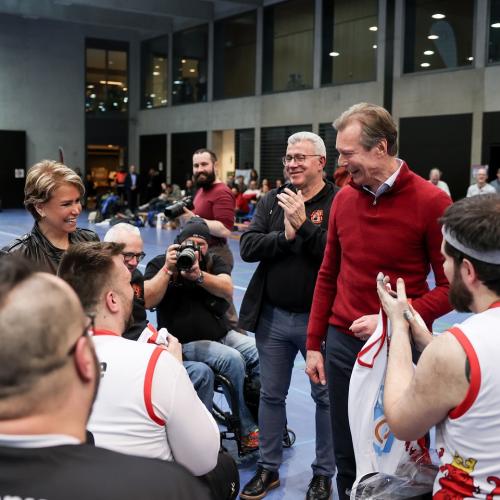 Au terme de la rencontre remportée par le SGK, LL.AA.RR. ont chaleureusement félicité les valeureux athlètes qui ont offert au public un spectacle impressionnant. Le Grand-Duc et la Grande-Duchesse ont aussi rappelé qu’en sport paralympique, il n’y a que des vainqueurs.