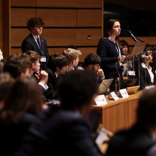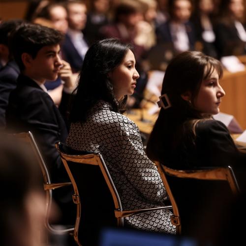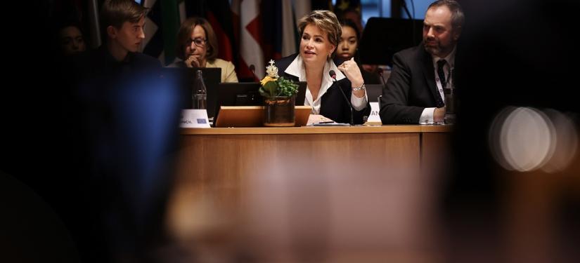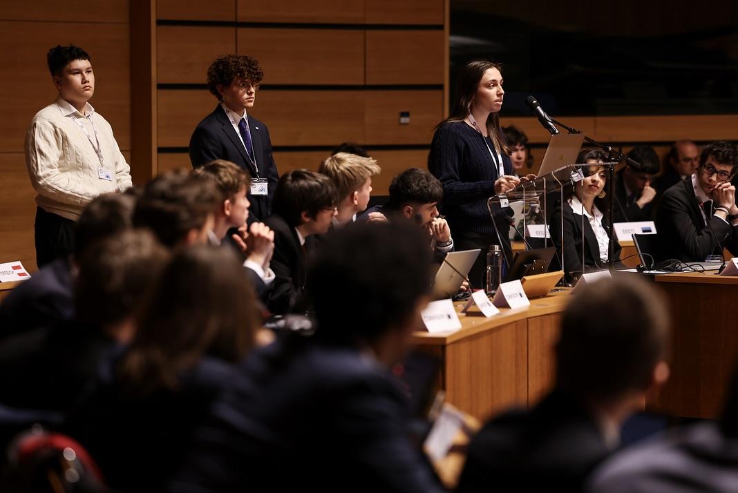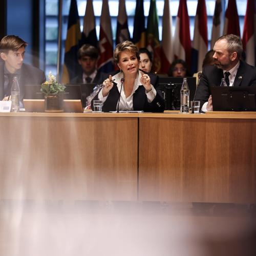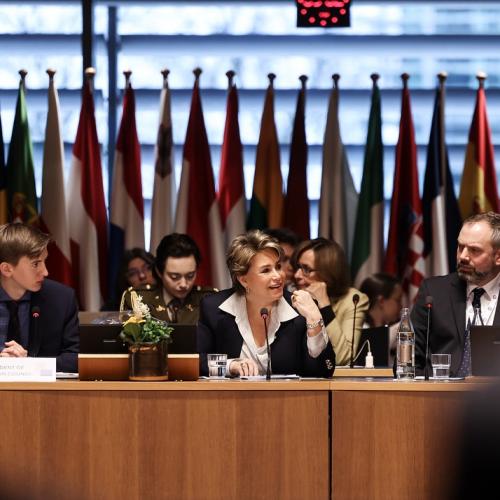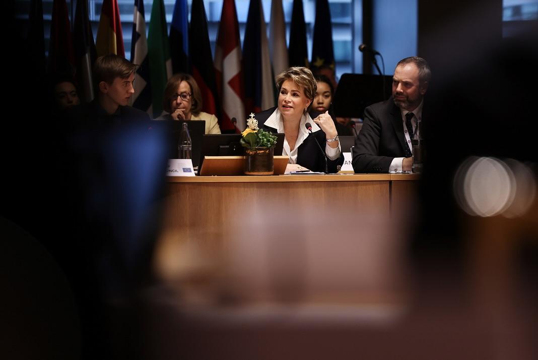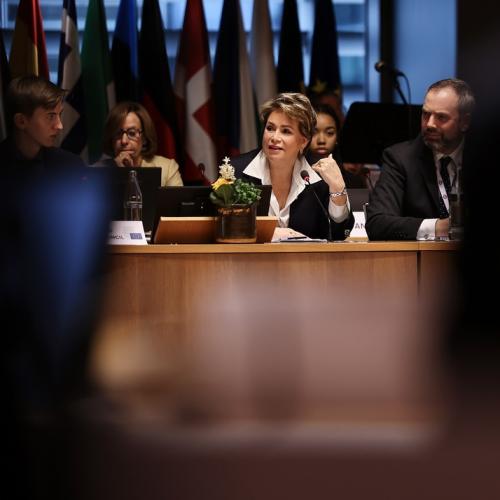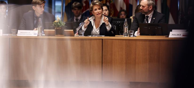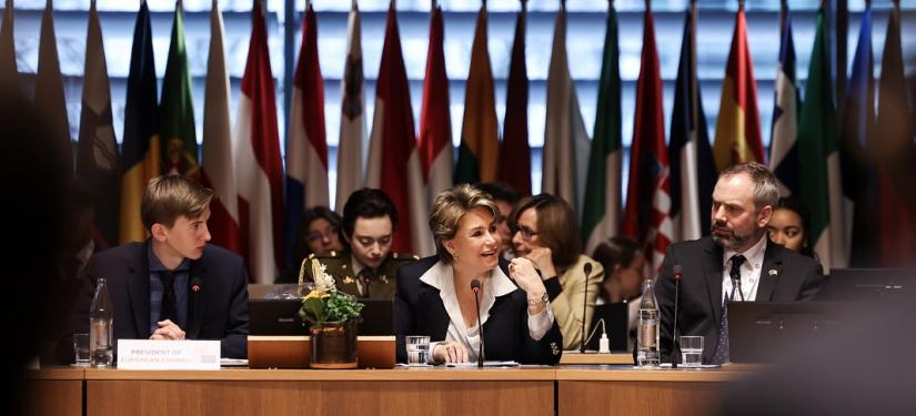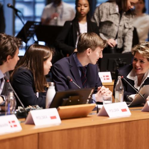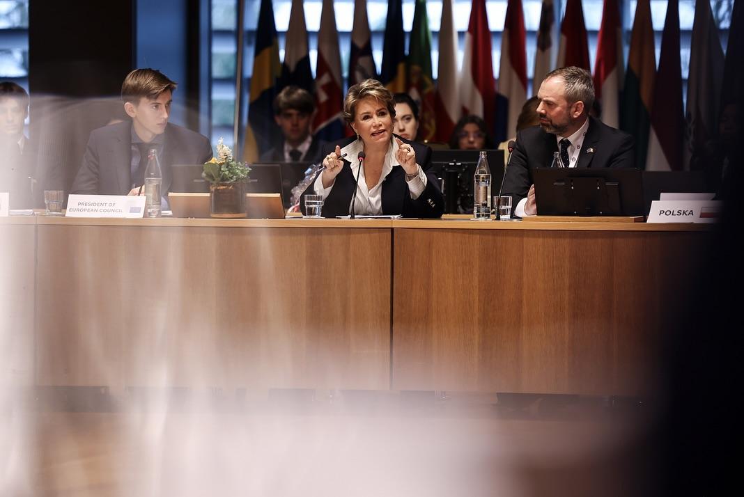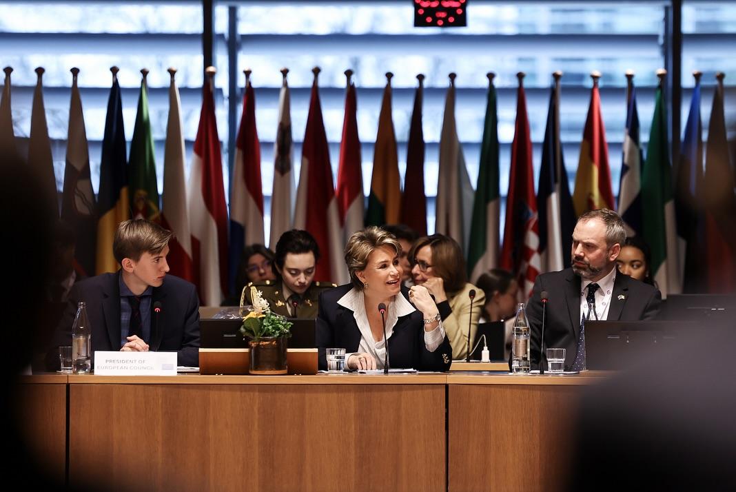 S.A.R. la Grande-Duchesse a participé, ce jeudi matin à l’ « European Convention Center » au Kirchberg, au « Model European Council » (MEC). Il s’agit d’une assemblée d’étudiants des Écoles européennes qui se réunit chaque année depuis 1984.