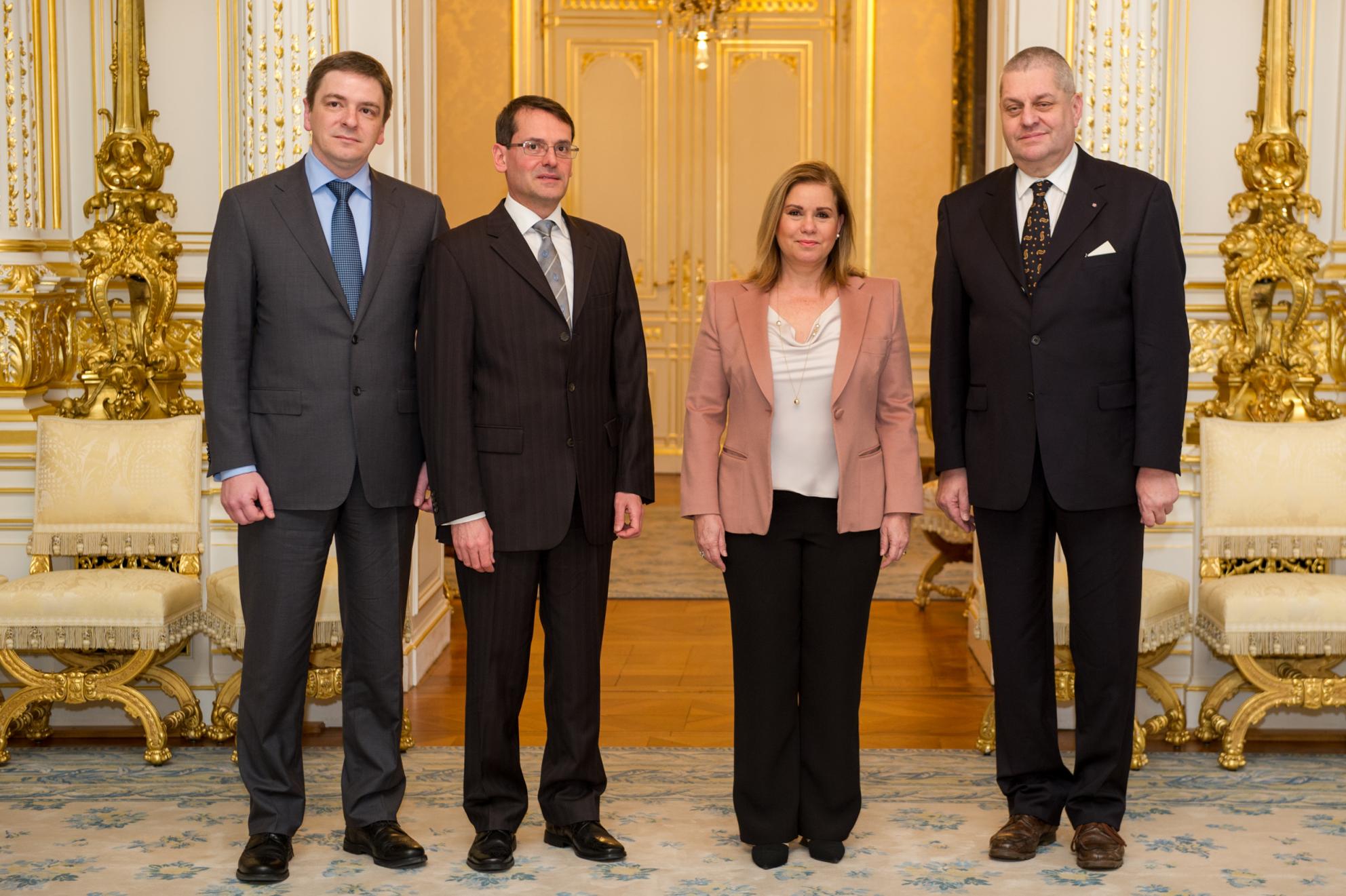 Son Altesse Royale la Grande-Duchesse, en Sa qualité de Présidente de la Croix-Rouge luxembourgeoise a reçu en audience au Palais grand-ducal dans le cadre du changement de direction au sein de l’organisation, M. Michel Simonis, directeur général de la Croix-Rouge luxembourgeoise depuis le 1er janvier 2013 et M. Jacques Hansen, directeur honoraire, auquel il succède ainsi que M. Marc Crochet nommé directeur général adjoint.