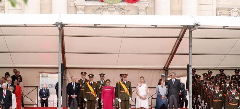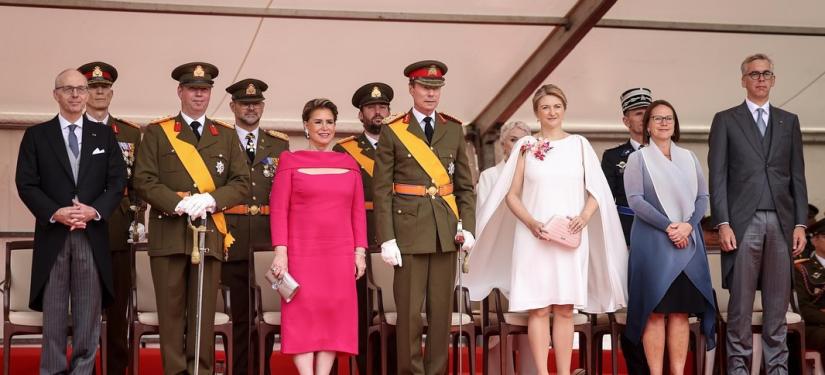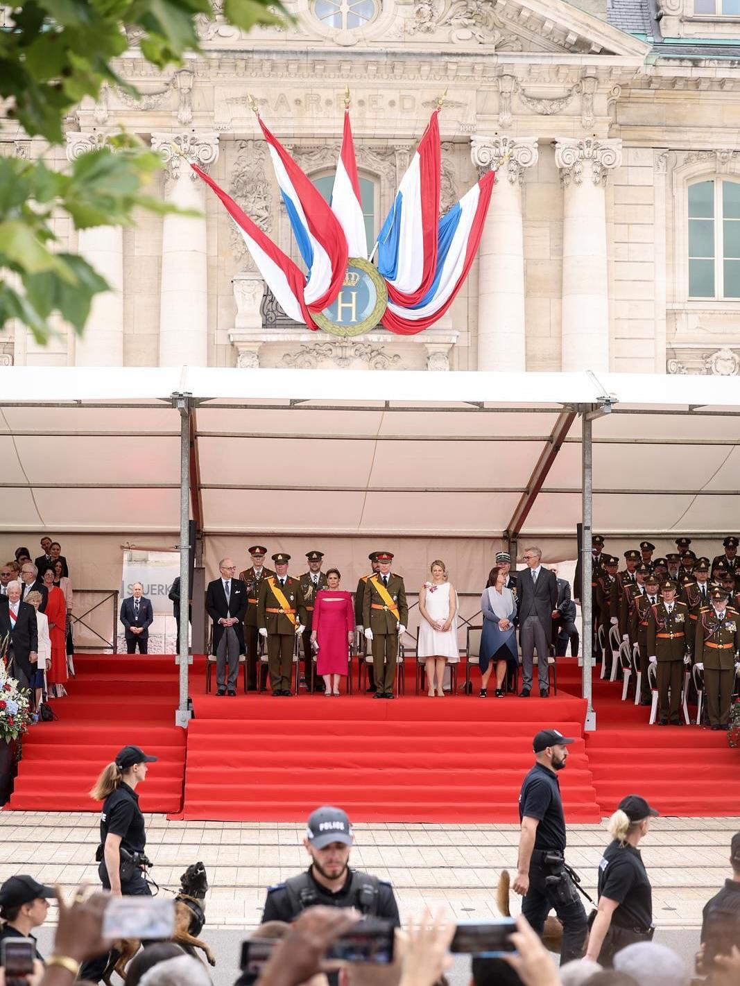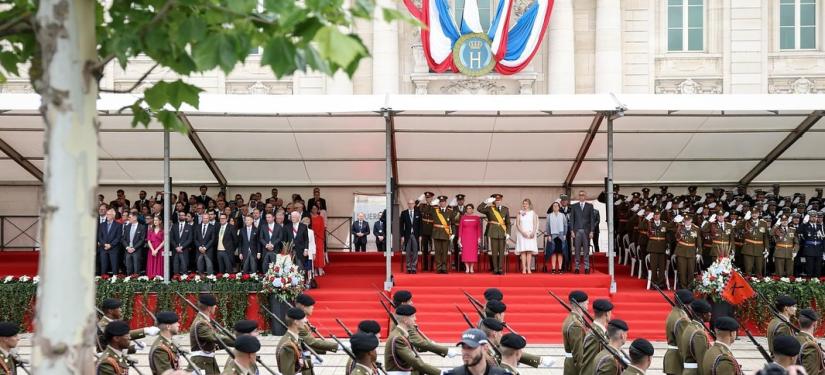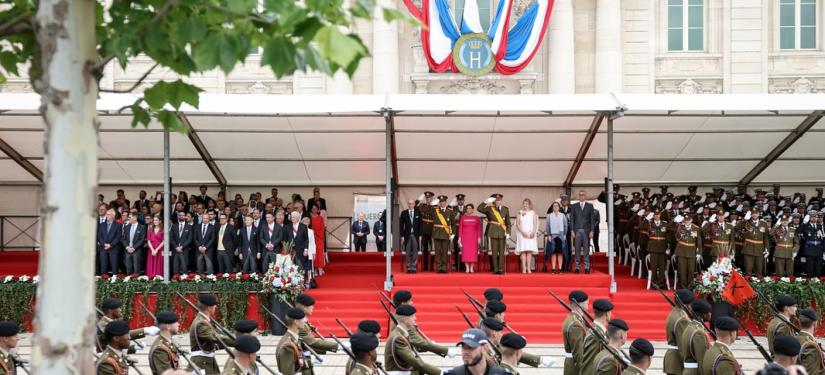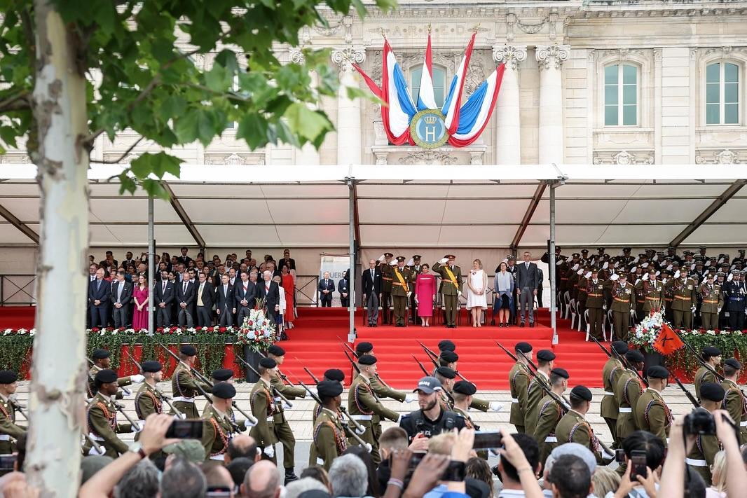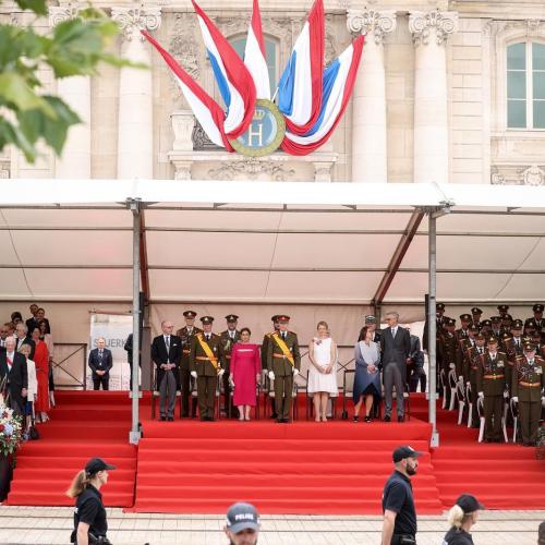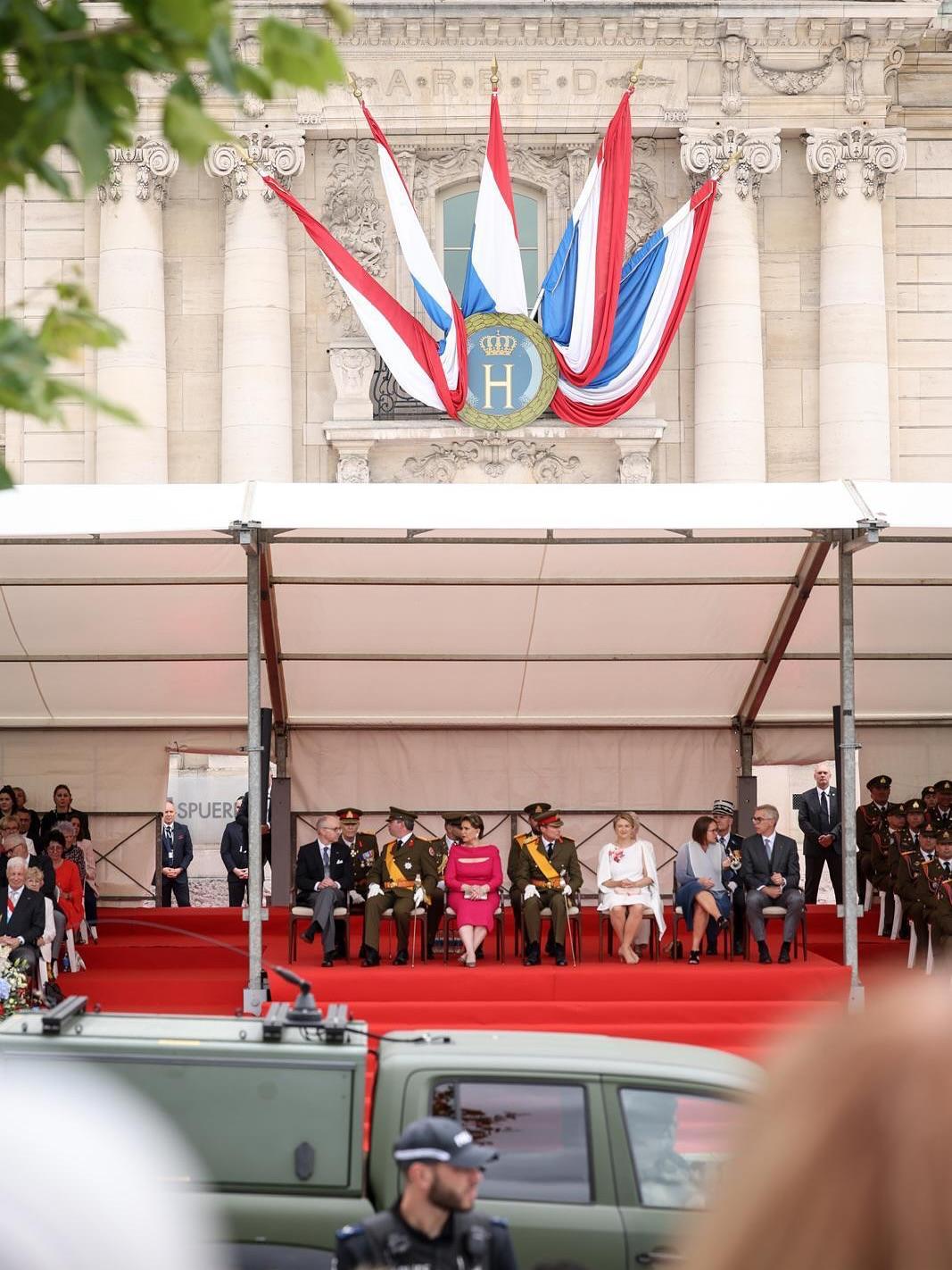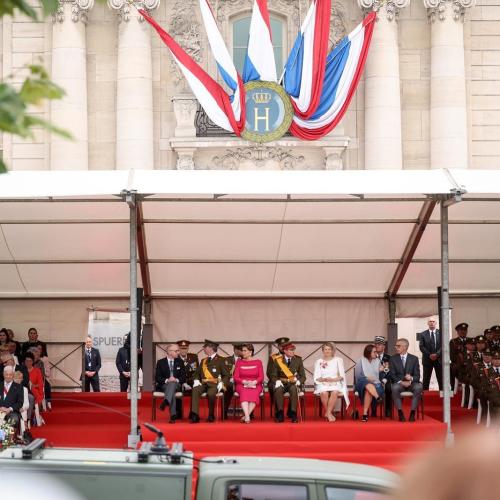 Sur l’Avenue de la Liberté, LL.AA.RR. le Grand-Duc et la Grande-Duchesse, accompagnés du Grand-Duc Héritier, de la Grande-Duchesse Héritière et du Prince Sébastien, ont assisté à la parade militaire, toujours très appréciée du public.