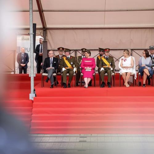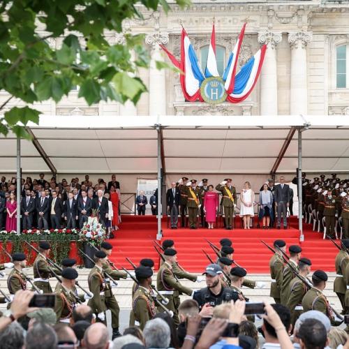Le Grand-Duc et le Grand-Duc Héritier, avec le Chef d’État-Major, le Général Stevel Thull, ont passé en revue les troupes. Un triple « Vive » puis l’hymne national ont marqué le début de la parade animée par l’Armée luxembourgeoise, la Police Lëtzebuerg, l’Administration des douanes et accises, l’Administration pénitentiaire, le Corps grand-ducal d’incendie et de secours (CGDIS), la Croix-Rouge luxembourgeoise et l’Union Grand-Duc Adolphe (UGDA).