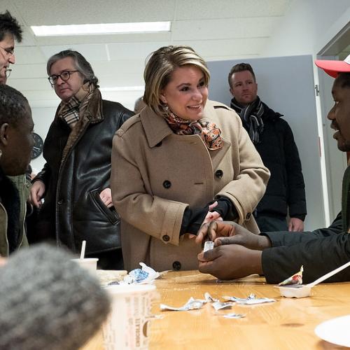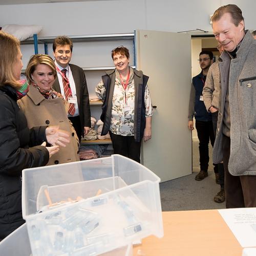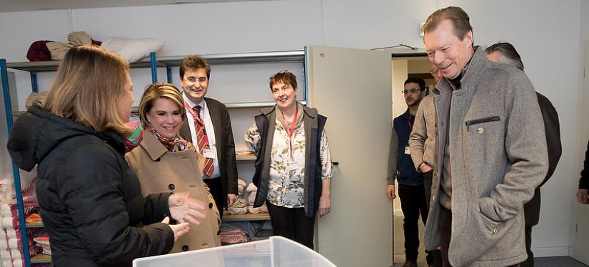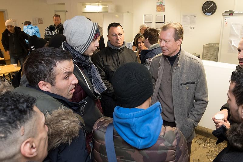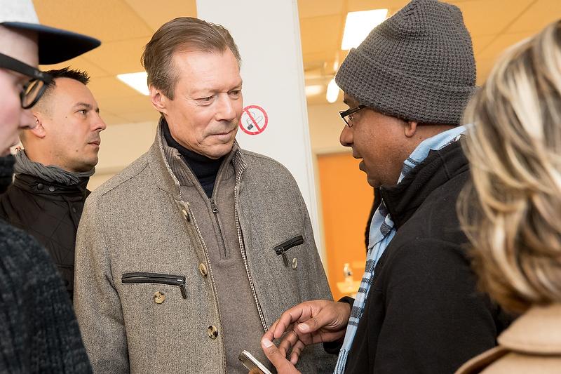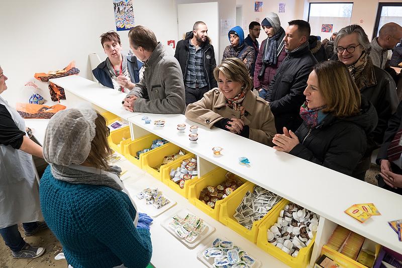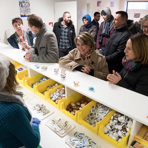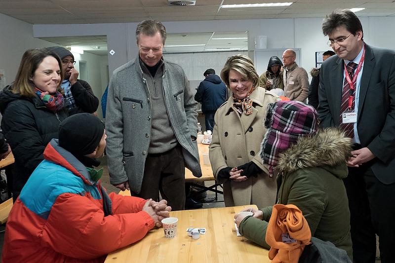 A l’heure du petit-déjeuner, le Couple grand-ducal a partagé un moment de convivialité avec les personnes présentes et en a profité pour s’entretenir avec les sans-abris ayant passé la nuit au foyer, ainsi qu’avec les bénévoles affectés à la distribution des repas et à l’organisation d’activités pour les bénéficiaires.