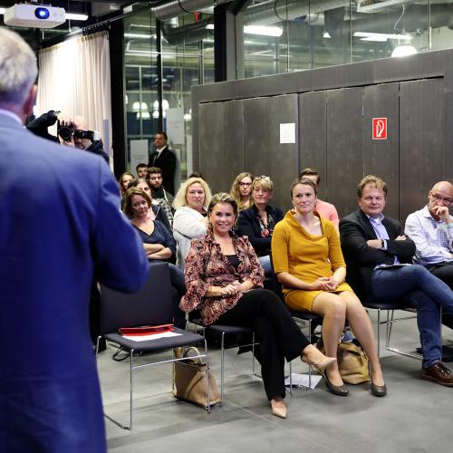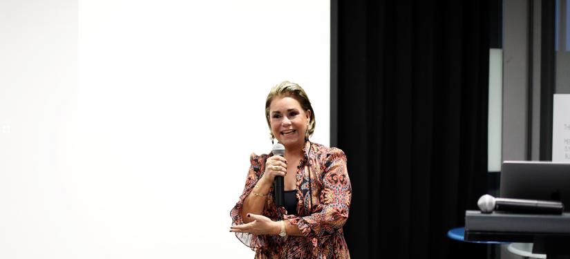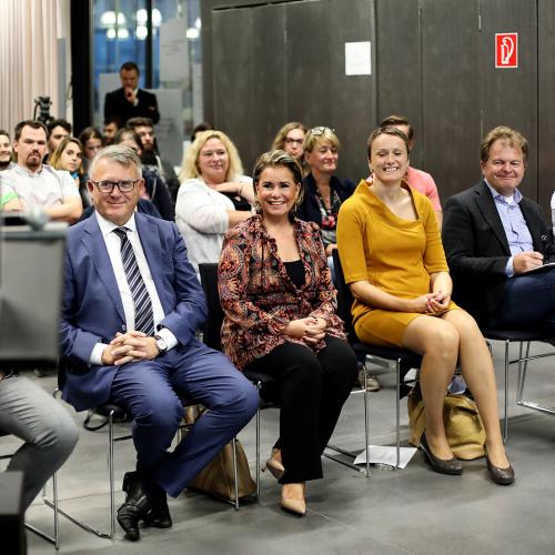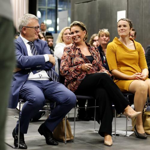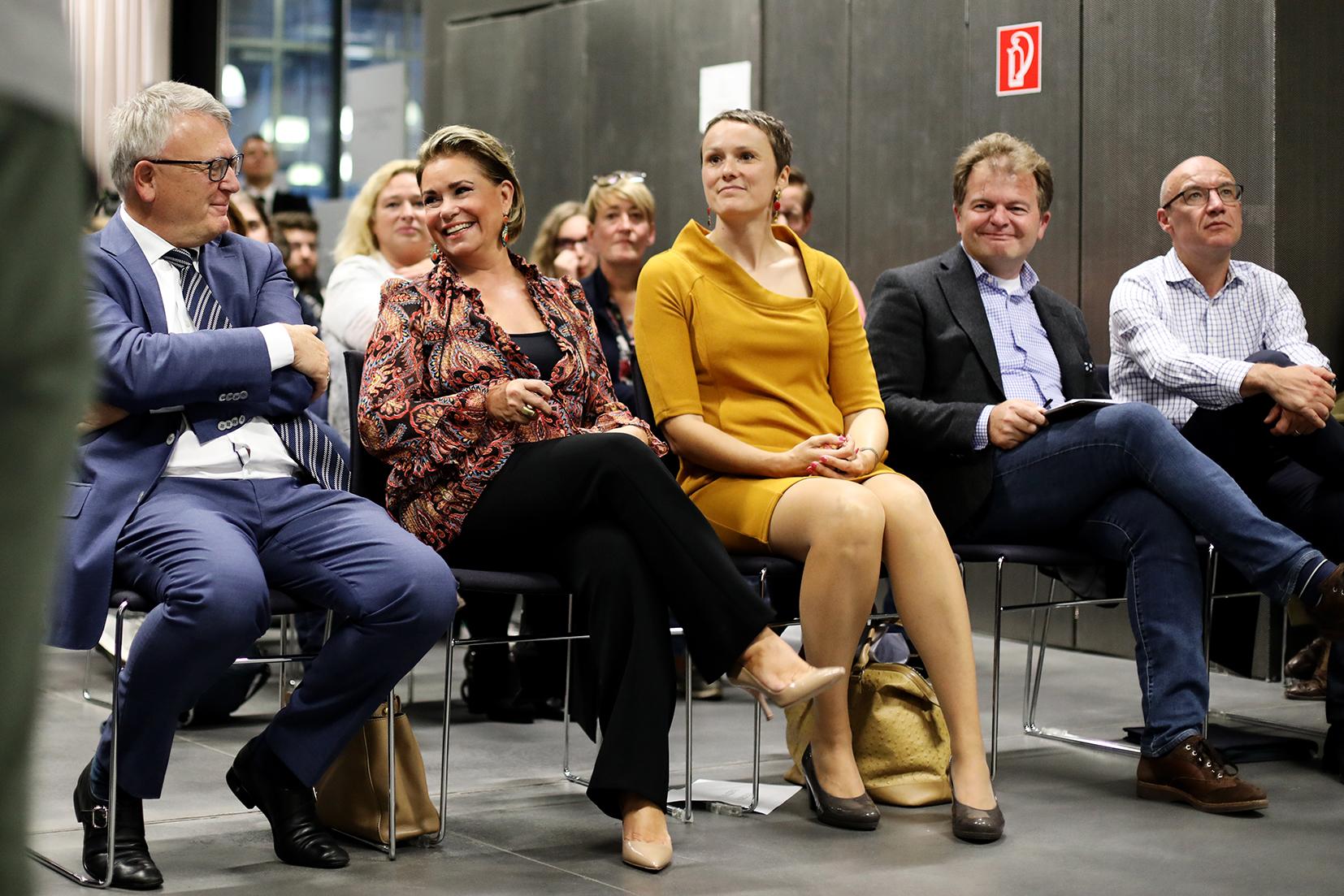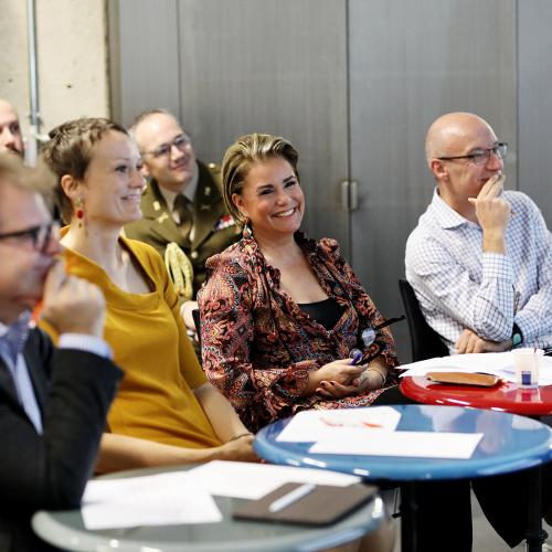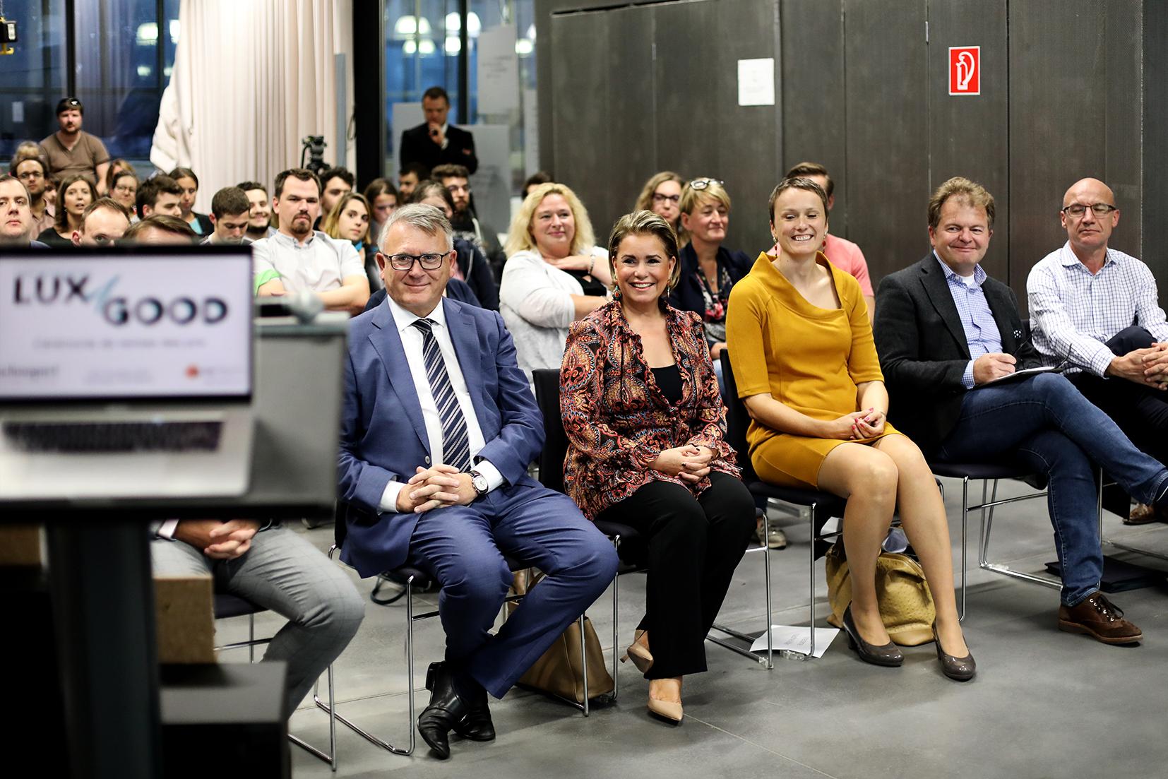 S.A.R. la Grande-Duchesse est entourée (de gauche à droite) par les autres membres du jury: M. Bernard Simon, CIO Bourse de Luxembourg; Mme Nadine Muller, conseillière au ministère du Travail en charge de l'économie sociale et solidaire; et M. Yves Francis, managing partner Deloitte Luxembourg.