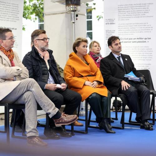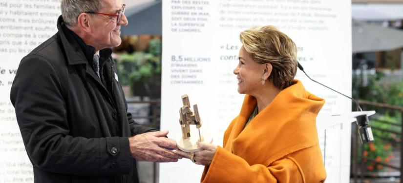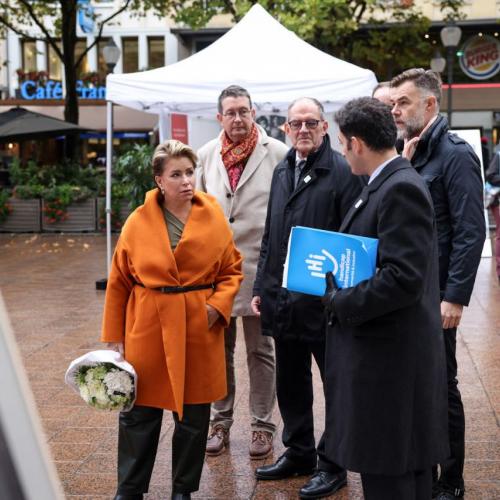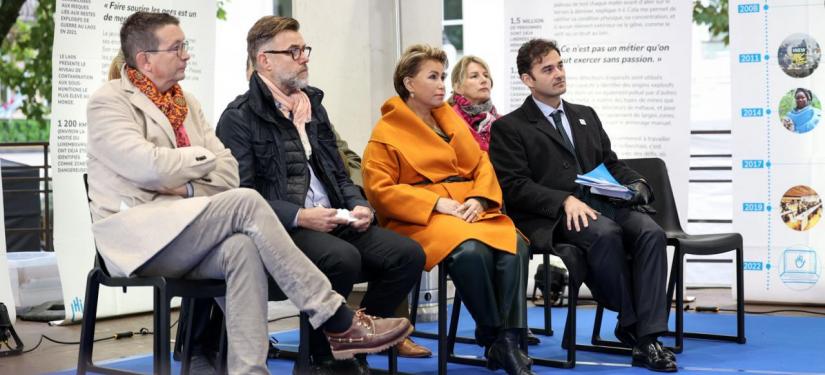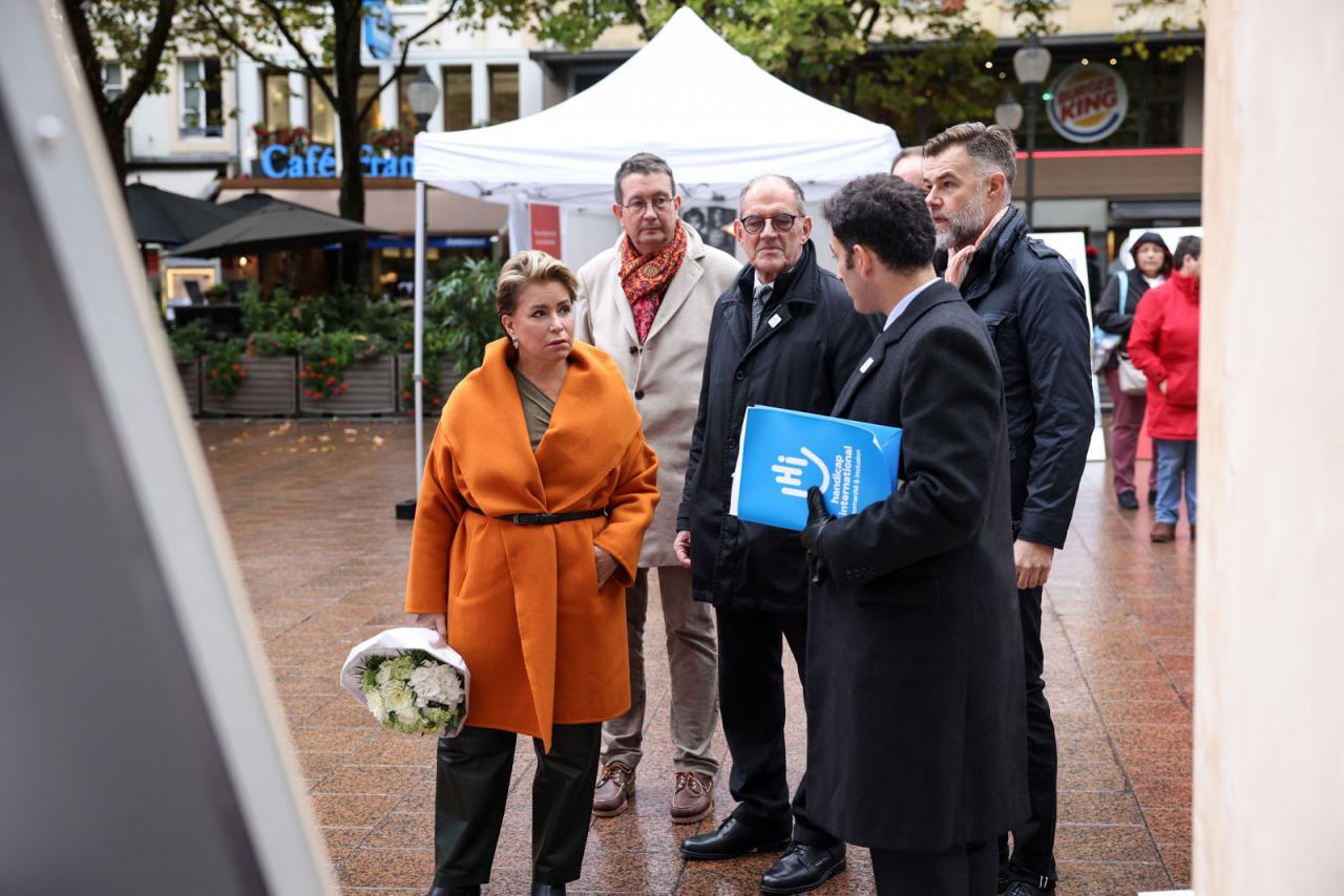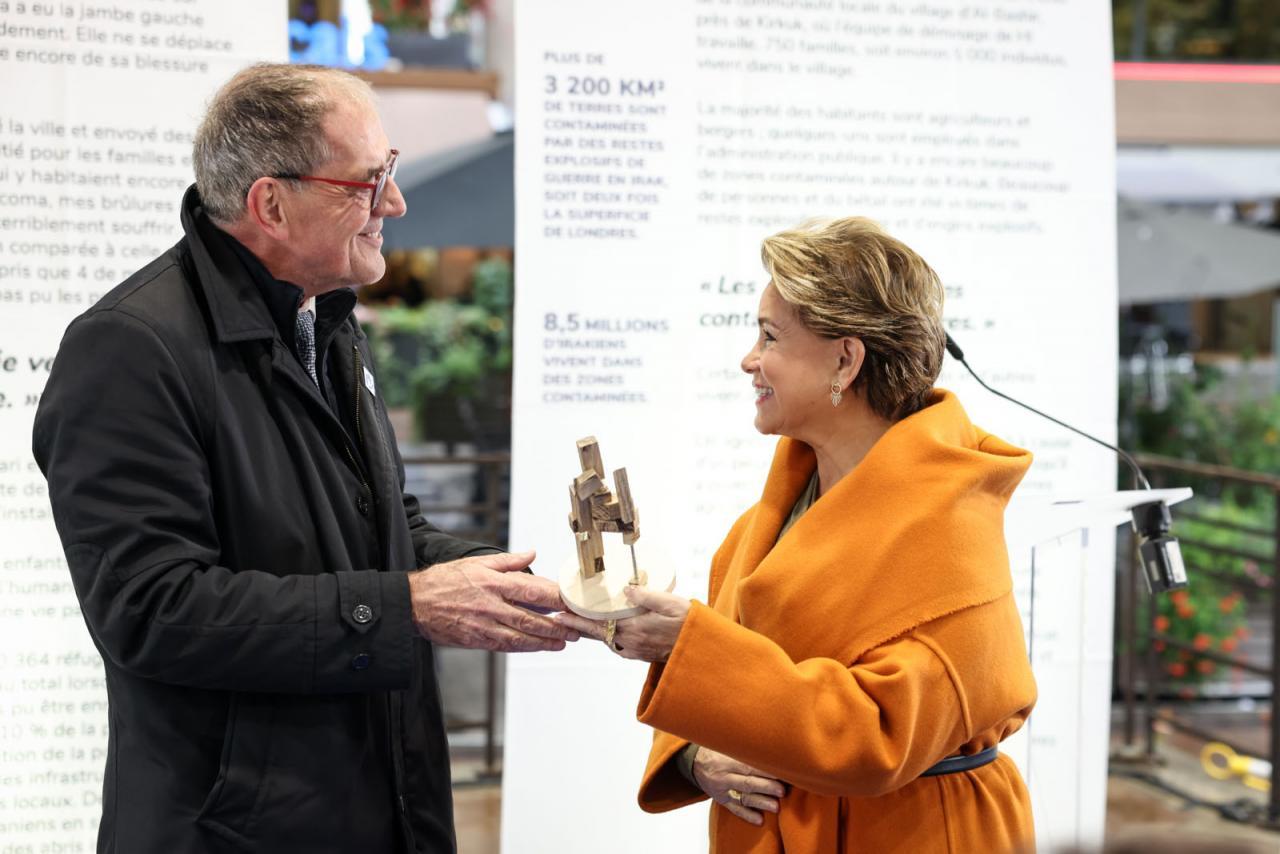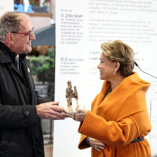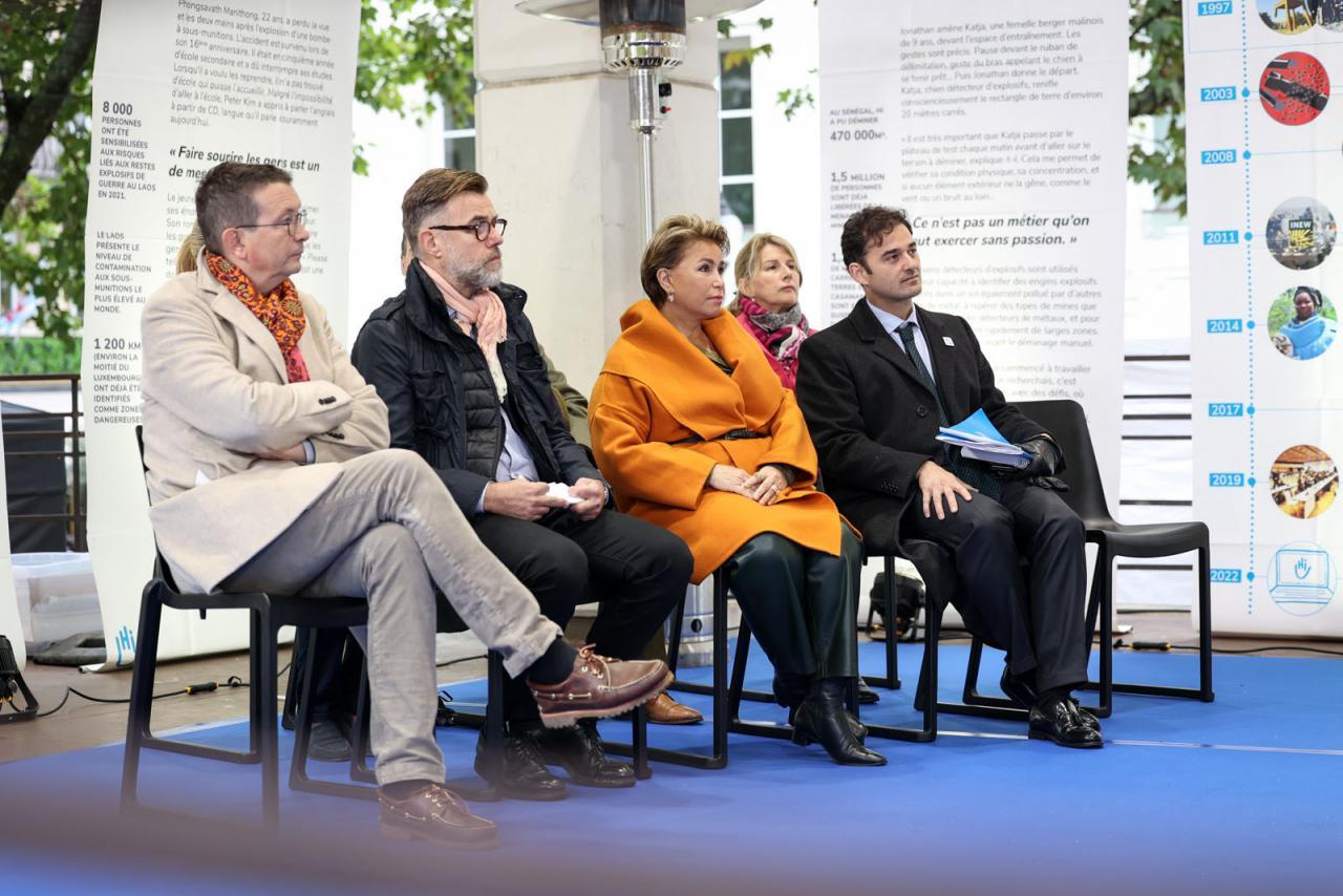 Après la visite des stands (dont une immersion auditive dans le quotidien de civils victimes de bombardements), S.A.R. la Grande-Duchesse, le Ministre Fayot et l’Échevin Bauer ont reçu une distinction pour leur engagement permanent pour la cause de Handicap International. Dans ses remerciements, la Grande-Duchesse a félicité l’ONG internationale et sa section luxembourgeoise pour leurs actions dans 60 pays, non seulement contre les mines anti-personnel dans les pays en guerre – qui restent comme en Ukraine et en Afghanistan d’une dramatique actualité.