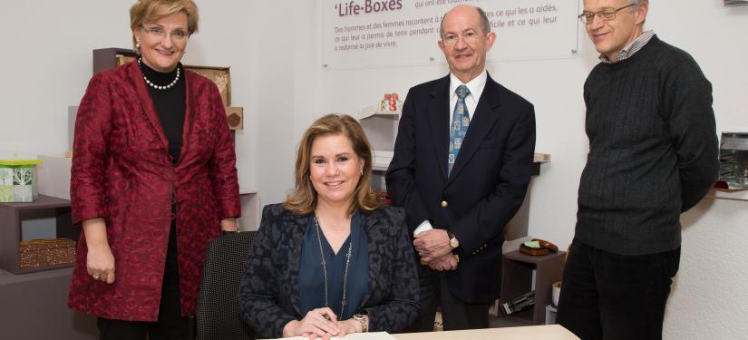 Après une visite des nouvelles infrastructures de la fondation, Son Altesse Royale la Grande-Duchesse a rejoint les invités afin de partager témoignages et expériences autour du verre de l’amitié.
