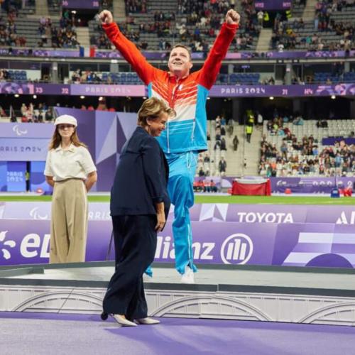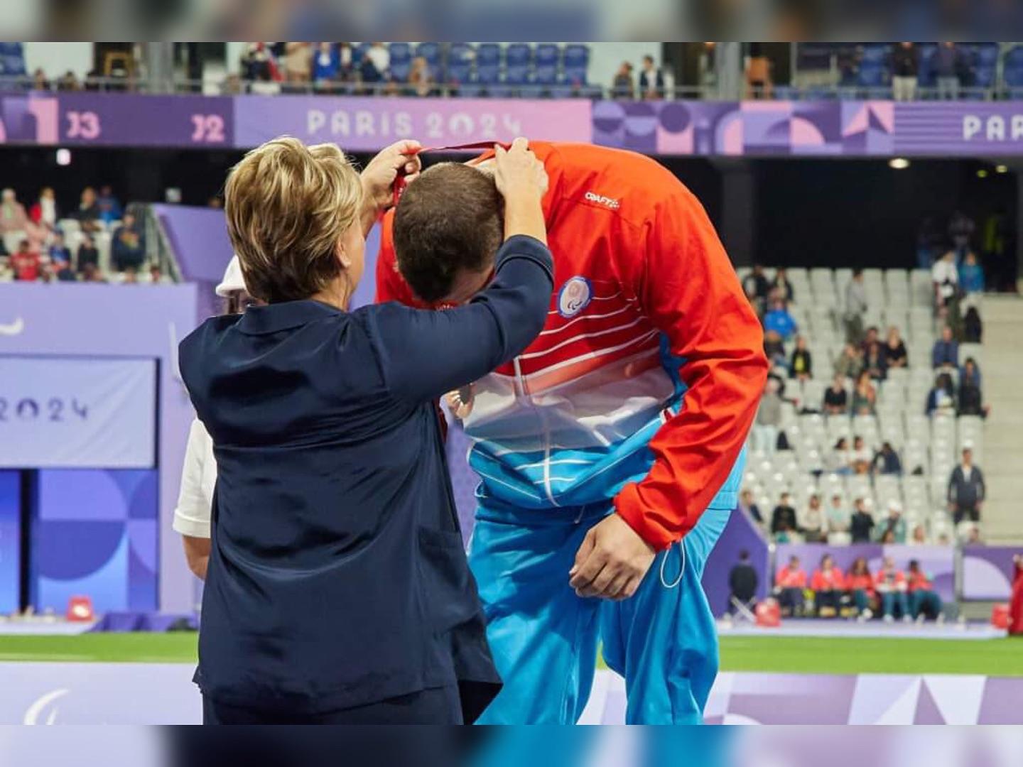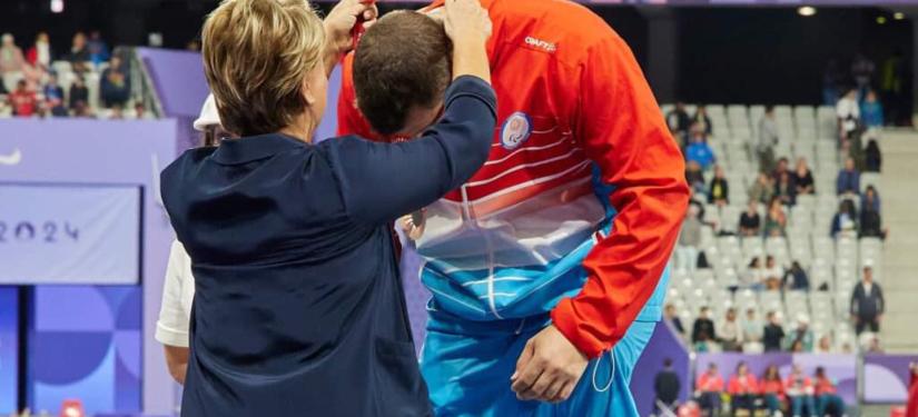 C’est avec une grande émotion que S.A.R. la Grande-Duchesse a remis la médaille de bronze à Tom Habscheid, athlète luxembourgeois, lors des Jeux paralympiques de Paris 2024.
