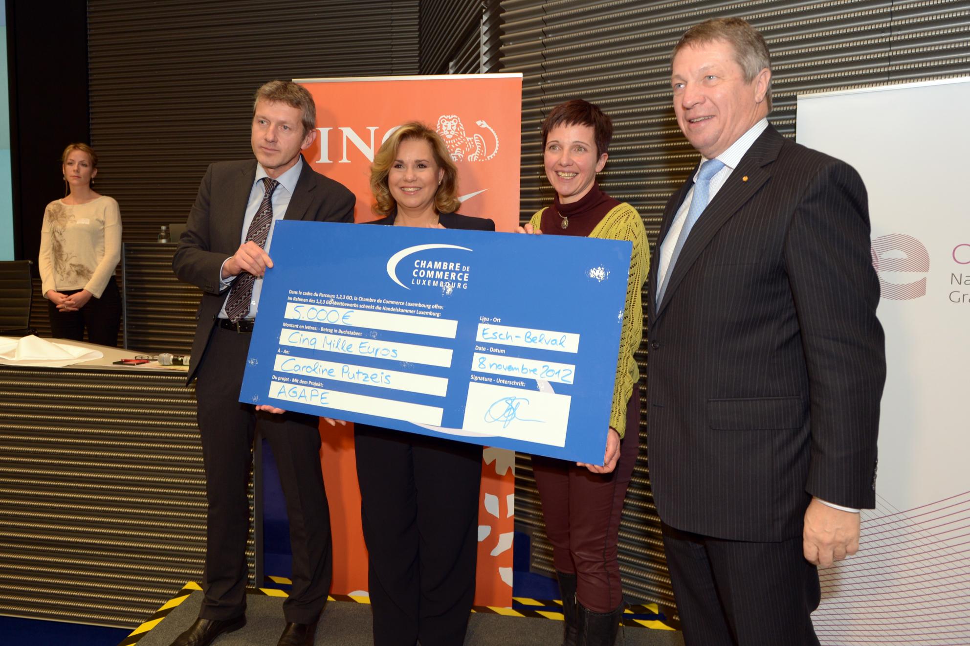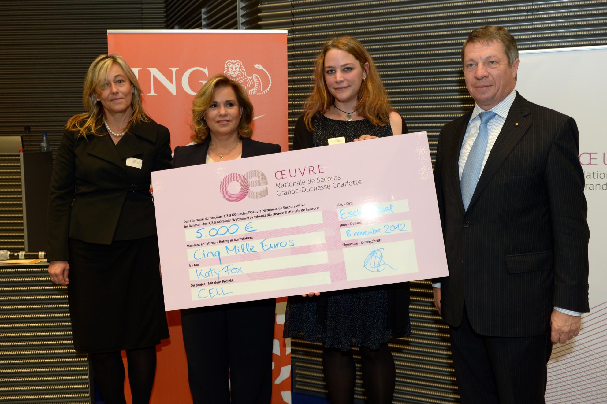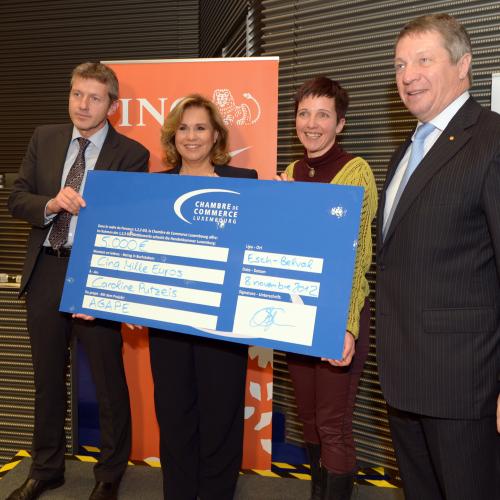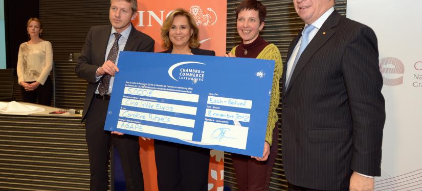 Son Altesse Royale la Grande-Duchesse a participé à la soirée de remise des prix du parcours "1,2,3, GO Social" qui s'est déroulée au RBC Investor Services d'Esch Belval. A cette occasion, S.A.R. la Grande-Duchesse a remis les prix aux lauréats, dont les réalisations récompensées sont porteuses de projets d’entreprises à finalité sociale ou solidaire, sur le principe du développement d'une économie solidaire au Grand-Duché de Luxembourg.