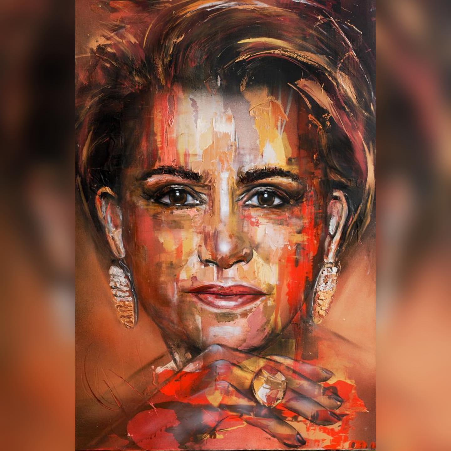La Grande-Duchesse Maria Teresa, a découvert l’artiste à l’occasion de son exposition « Immersion » organisée dans la galerie d’art « Am Tunnel » de la Spuerkess qui a pris fin en décembre 2021. S.A.R. a partagé au Grand-Duc son « coup de coeur » pour les œuvres de l’artiste et sa méthode « au couteau ». Son Altesse Royale le Grand-Duc a alors commandé un portrait de Son épouse à Madame Warzée.