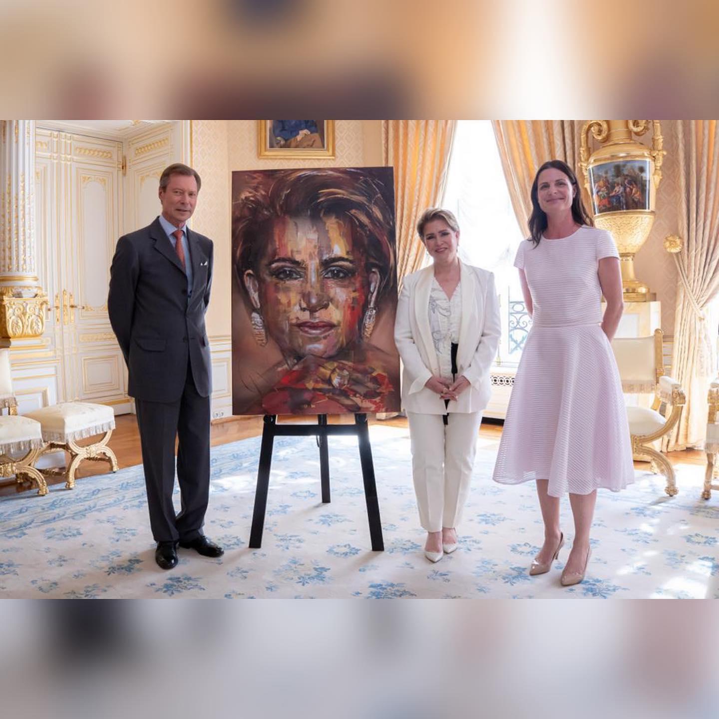 L’artiste a pu présenter le portrait au Couple grand-ducal, à la grande surprise de la Grande-Duchesse, qui a découvert l’œuvre et l’a reçu avec beaucoup d’émotion.