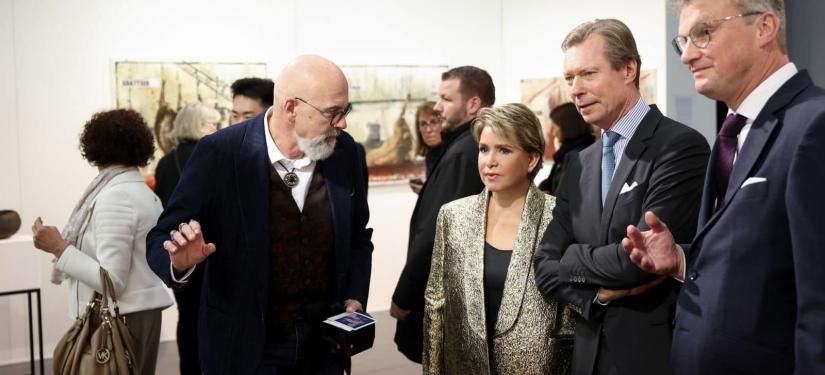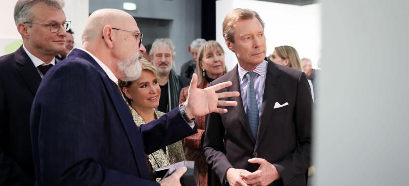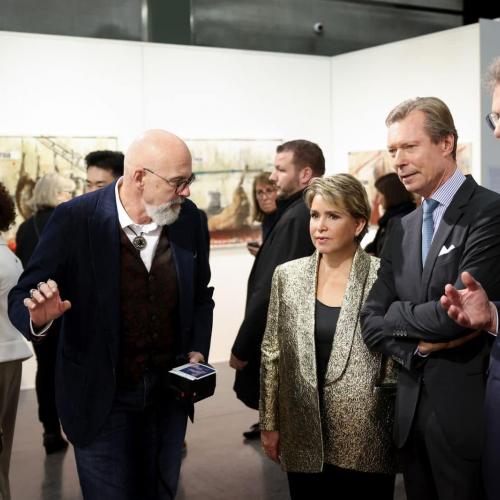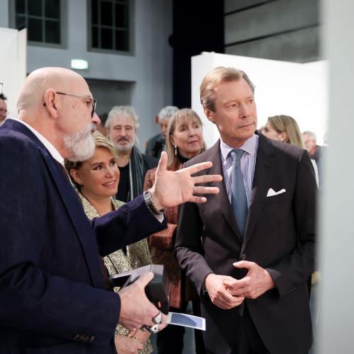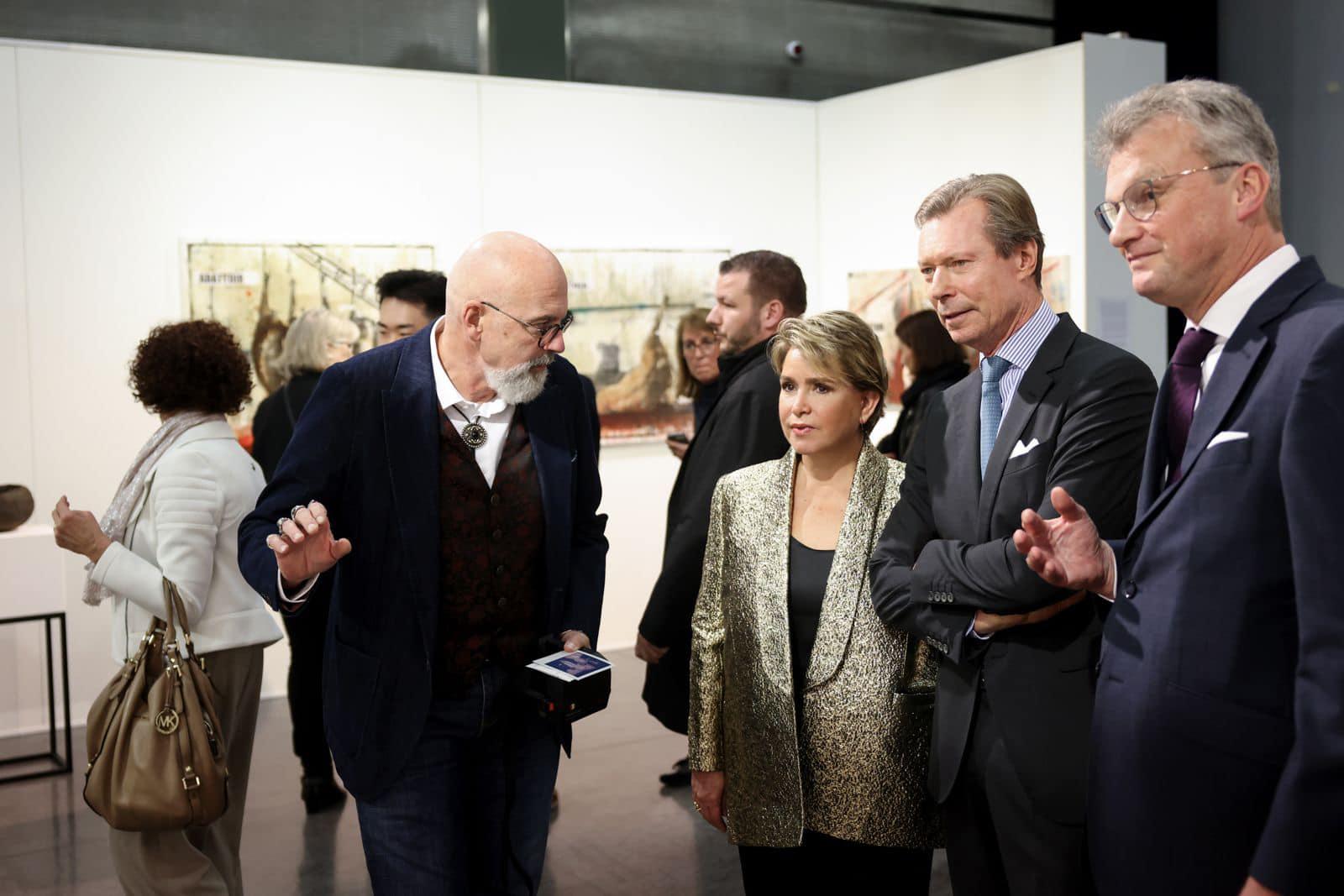 LL.AA.RR. le Grand-Duc et la Grande Duchesse ont clôturé ce week-end artistique au Tramsschapp, à Limpertsberg, par le vernissage du « Salon 2022 du CAL » et la remise du Prix Werner, en compagnie de Madame Sam Tanson, Ministre de la Culture, et de Monsieur Marc Hostert, Président du CAL.