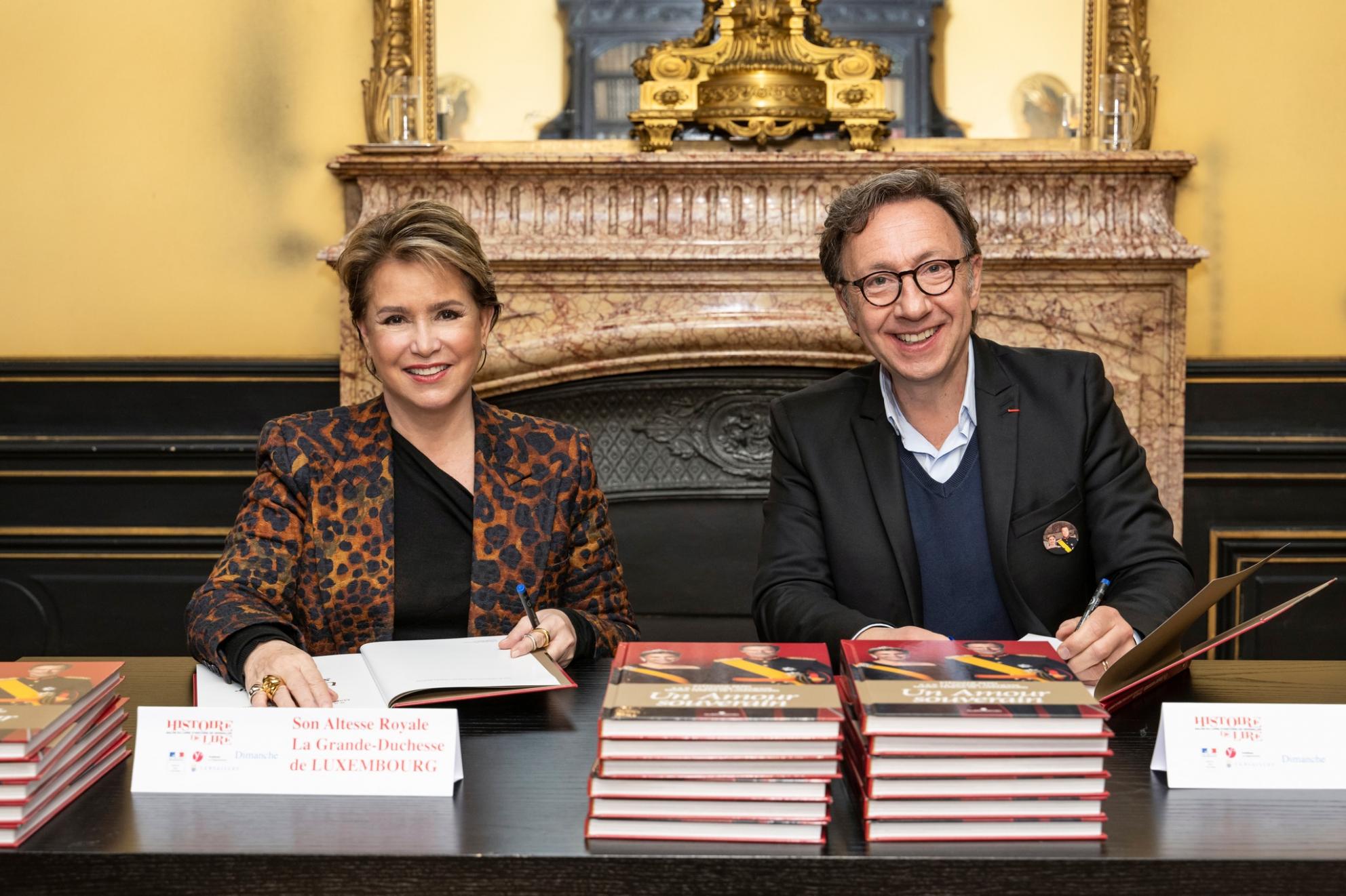 Durant cette rencontre M. Michelland a tenu à souligner le lien qui unit les deux co-auteurs et amis, à savoir « leur choix commun du Luxembourg comme patrie de coeur » mais a également rappelé l’engagement humanitaire de longue date de la Grande-Duchesse, notamment à travers l’association Stand Stand Speak Rise Up pour laquelle Stéphane Bern est engagé, aux côtés de la Grande-Duchesse et de Mme Chékéba Hachemi, également présente pour l’occasion.