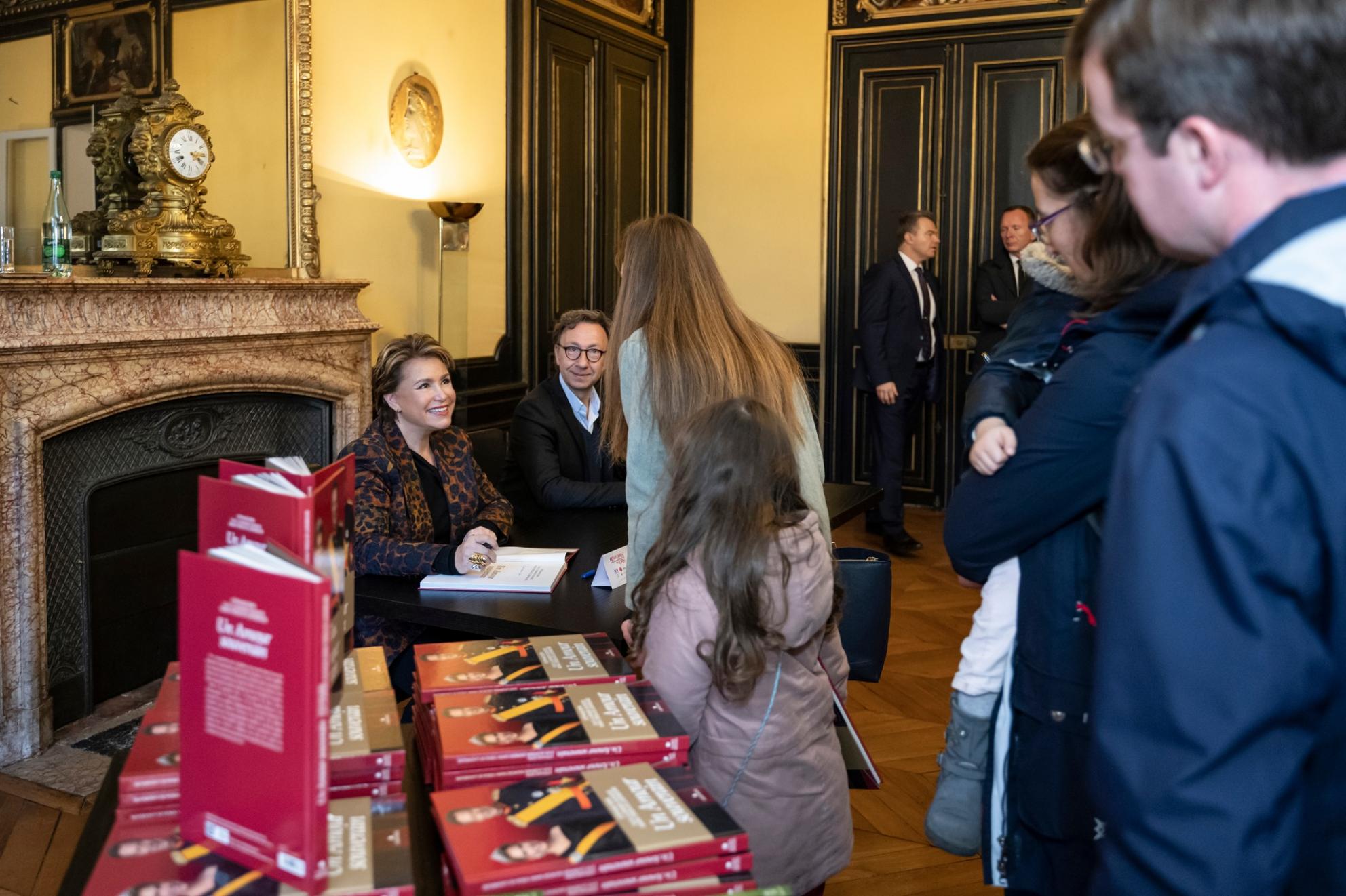 Le Préfet des Yvelines, M. Jean-Jacques Brot, a ensuite reçu la Grande-Duchesse et Stéphane Bern a la Préfecture des Yvelines où s’est déroulée une grande séance de dédicaces, avec des centaines de personnes attendant une signature de la part des deux co-auteurs d’ « Un Amour souverain », dont la totalité des droits d’auteur est reversée à l’association Stand Speak Rise Up!