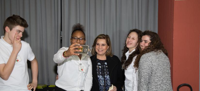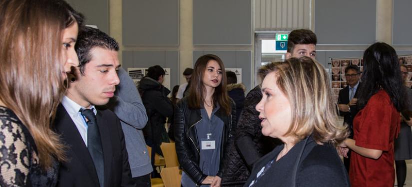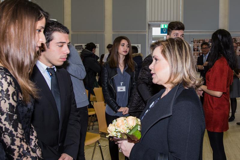 Son Altesse Royale la Grande-Duchesse a donné un discours au Lycée Technique du Centre mercredi 16 mars 2016. Un discours à l’issue duquel la Grande-Duchesse s’est entretenue en petits groupes avec les élèves autour des thématiques telles que l’immigration, les réfugiés, la monarchie et les troubles spécifiques du langage.