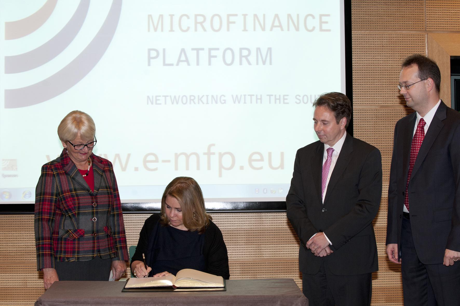 A l’issue de la séance qui s’est déroulée à l’Abbaye de Neumünster, la Grande-Duchesse a procédé à la signature de l’"Appel de Paris pour une microfinance responsable".