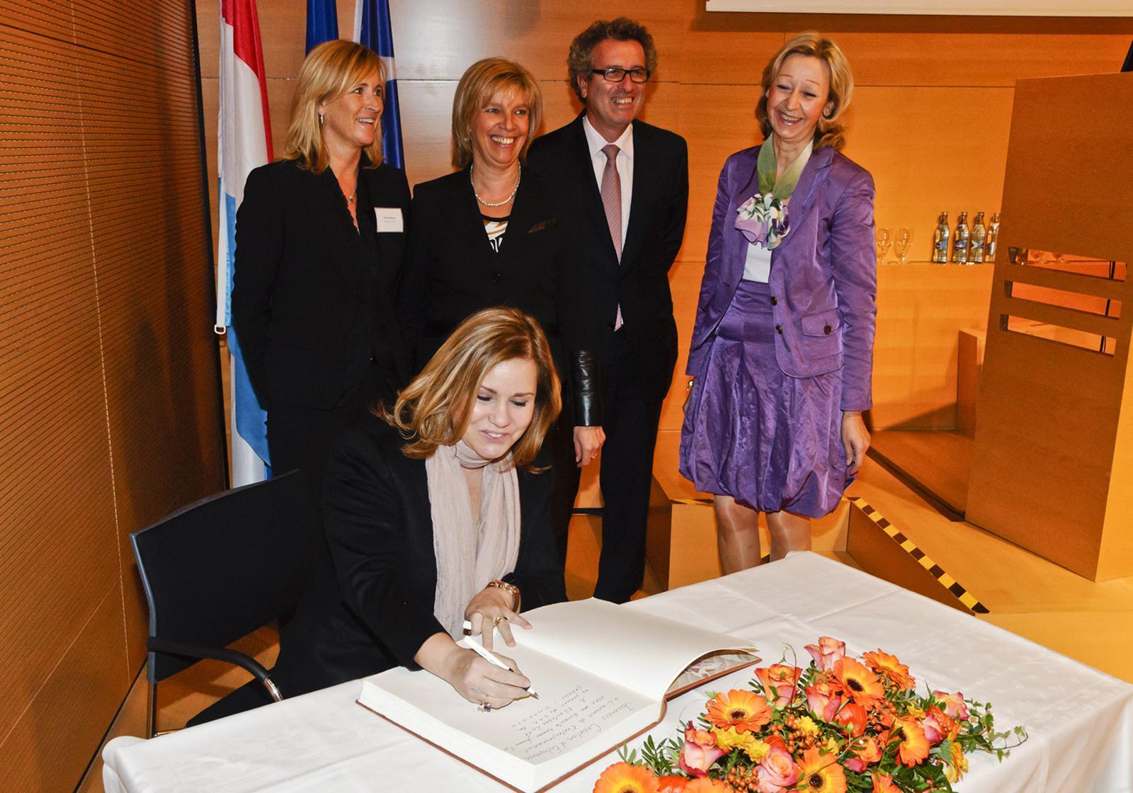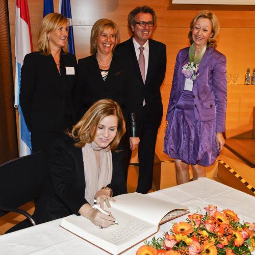 Son Altesse Royale la Grande-Duchesse a assisté à la soirée-débat intitulée "Avenir de l’entrepreneuriat, vers plus de mixité hommes/femmes", conjointement organisée par la Fédération des Femmes Cheffes d’Entreprise du Luxembourg (FFCEL) et par les Femmes Leaders Luxembourg (FLL) qui s’est déroulée à la Chambre de Commerce de Luxembourg. S.A.R. la Grande-Duchesse a participé aux tables rondes après avoir prononcé une allocution dans le cadre du débat sur la parité.