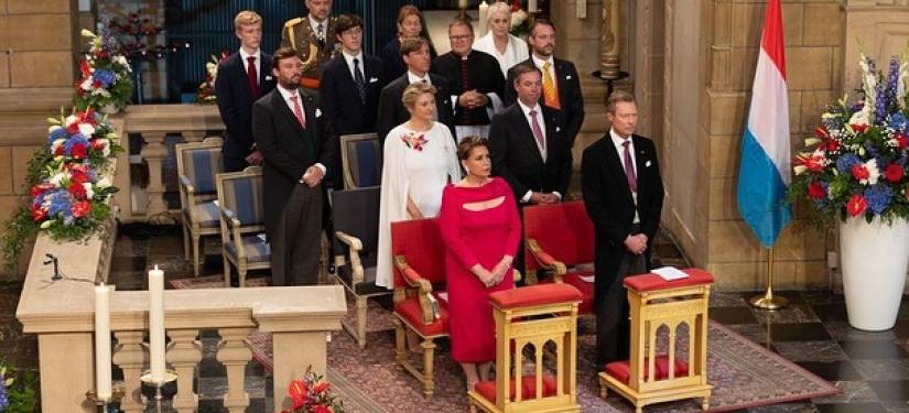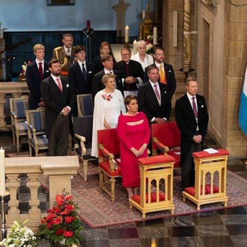 La Famille grand-ducale a participé au traditionnel « Te Deum » clôturant les célébrations de la Fête nationale. L’hymne a été entonné par Son Éminence le Cardinal Jean-Claude Hollerich, puis chanté par la Maîtrise Sainte-Cécile et le choeur de la Cathédrale Notre-Dame de Luxembourg.