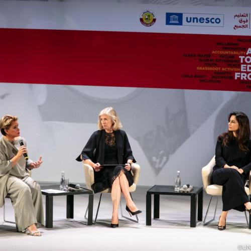 La Grande-Duchesse s’est ensuite longuement entretenue avec S.A. Sheikha Moza bint Nasser, présidente de la Fondation « Education Above All »