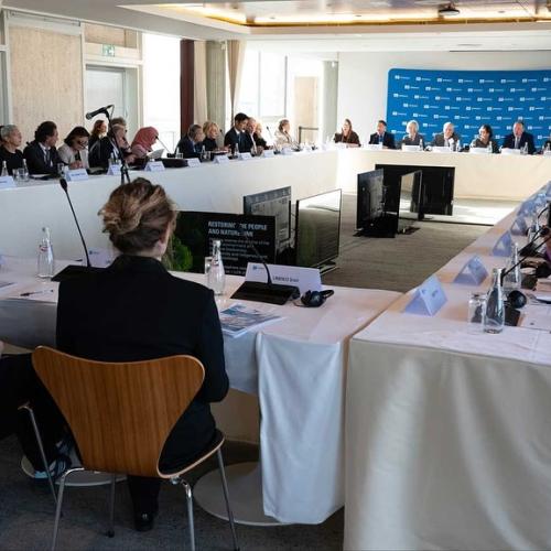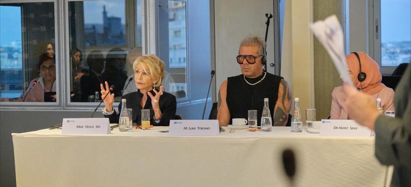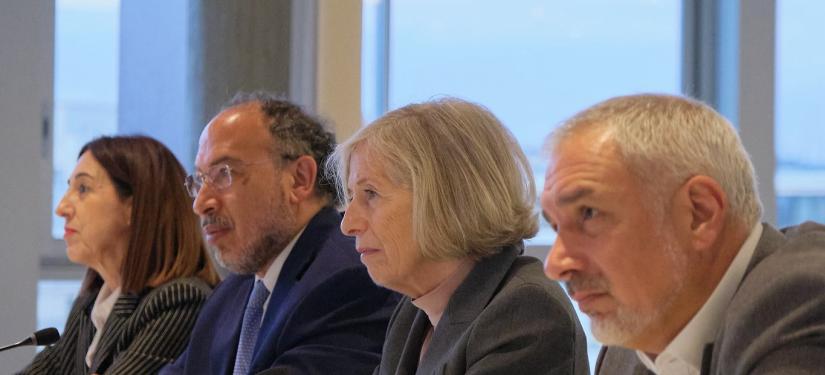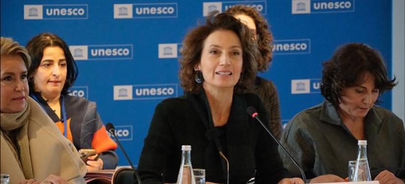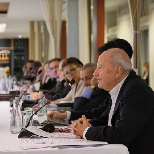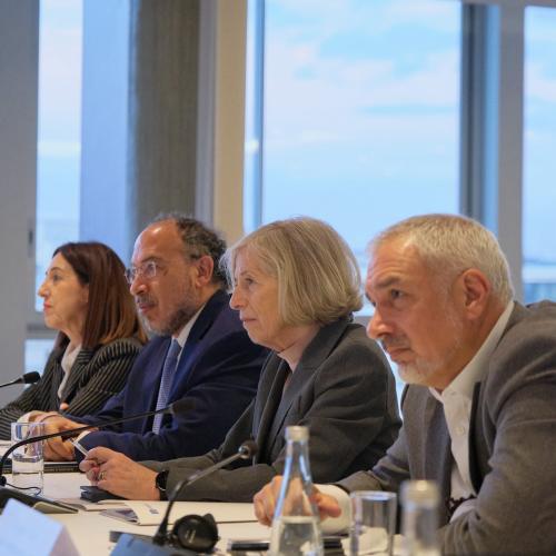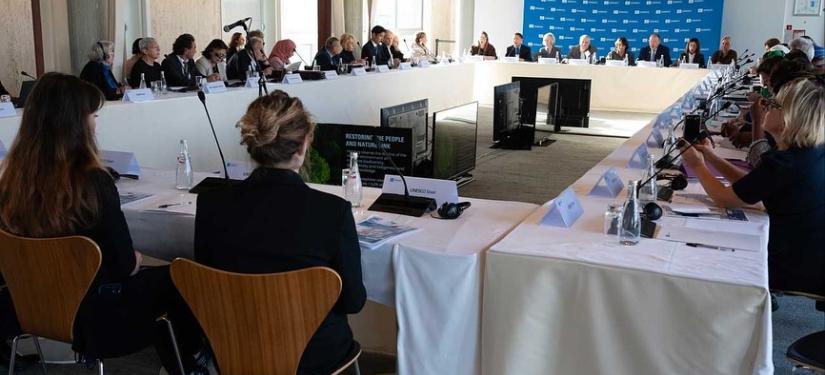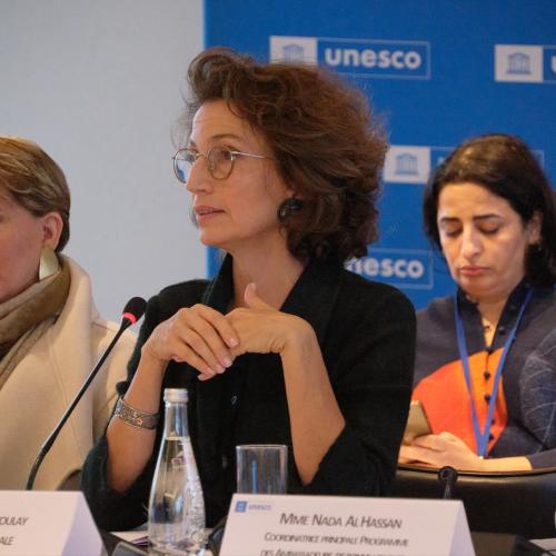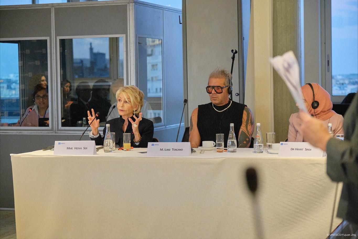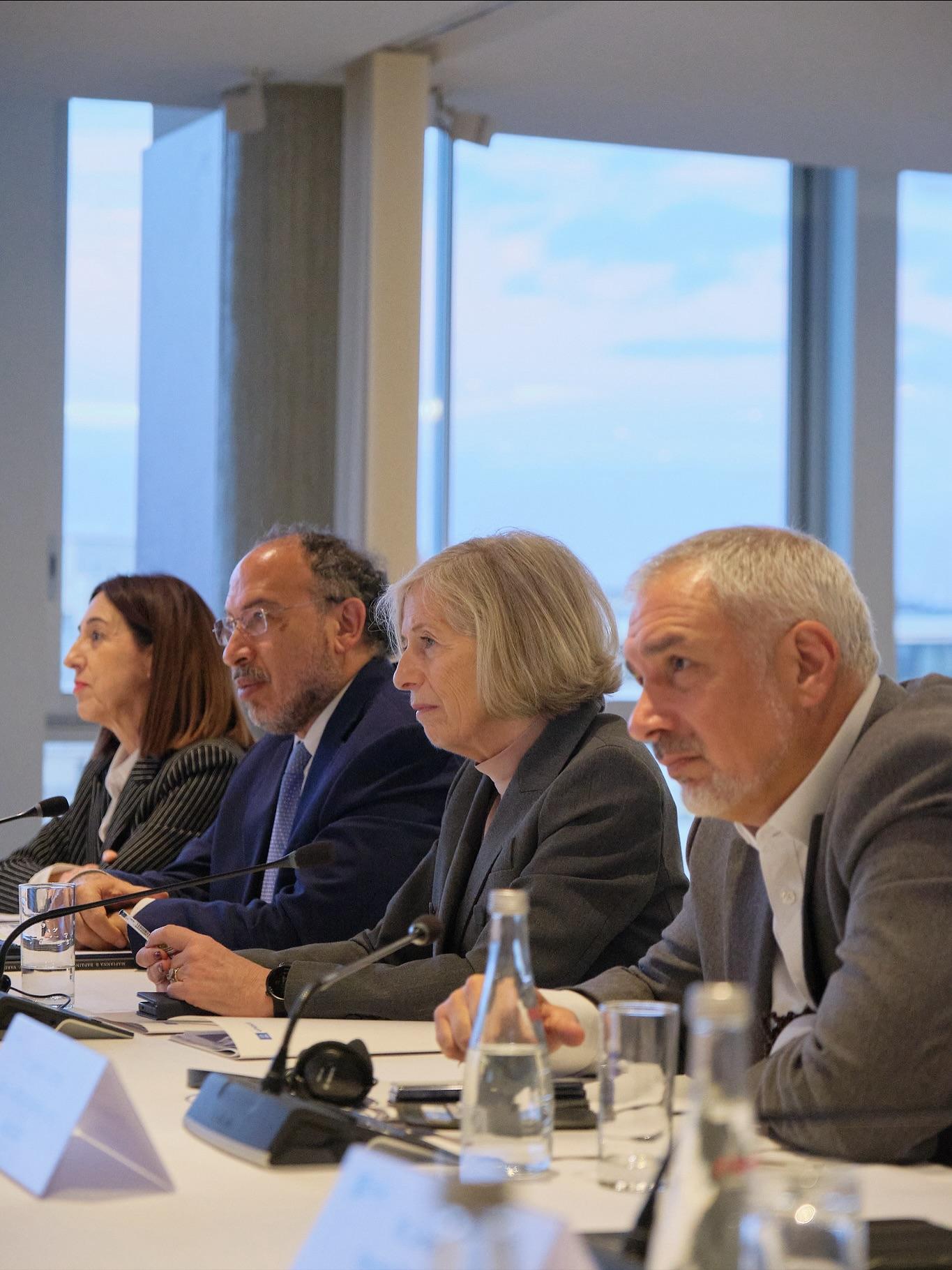 Aux côtés de la princesse Firyal de Jordanie, de Marc Ladreit de Lacharrière, de Ute-Henriette Ohoven et de Guila Clara Kessous, Artiste de l’UNESCO pour la paix, la Grande-Duchesse a participé aux échanges sur les priorités actuelles de l’organisation : éducation, culture, coopération internationale et promotion de la paix.
