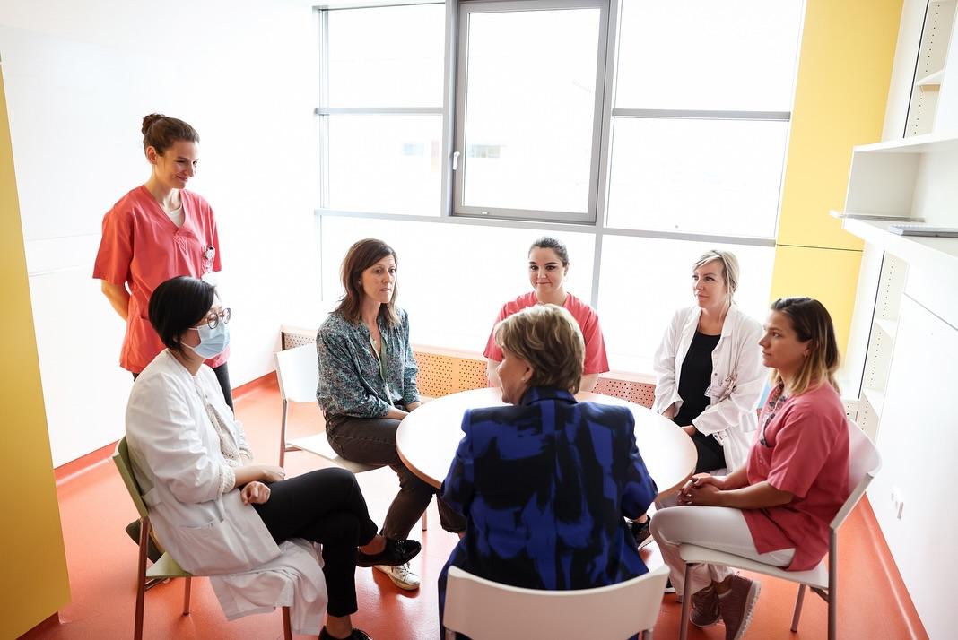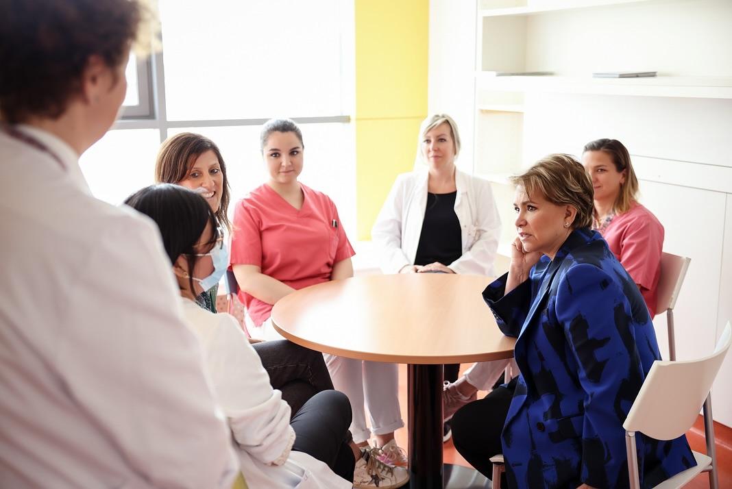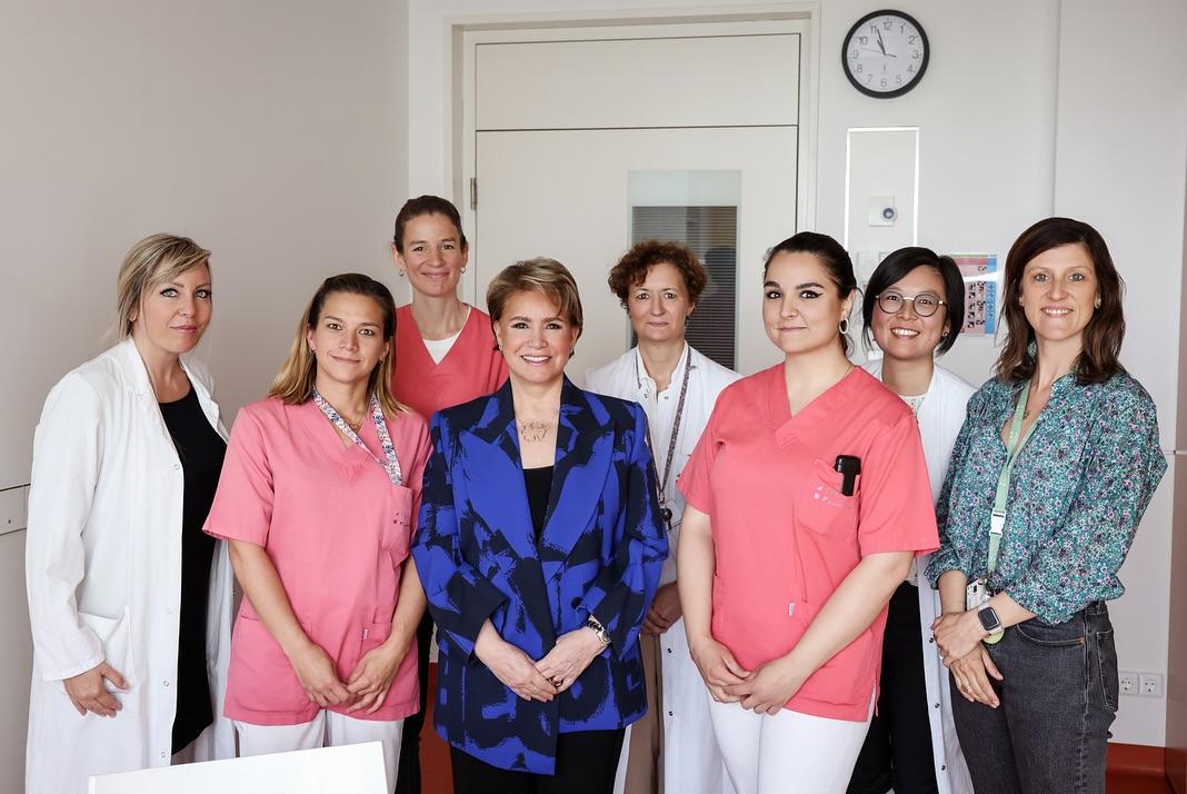 Au sein de l’école installée dans l’hôpital, elle a assisté à un cours avec quelques enfants. Enfin, assumant son Haut Patronage de l’Association Nationale des Infirmiers et Infirmières du Luxembourg (ANIL, depuis 1991), elle a rencontré la directrice des soins du CHL et une jeune infirmière pédiatrique pour évoquer la pénurie du personnel soignant qui touche aussi le Luxembourg et les mesures mises en place ces dernières années.