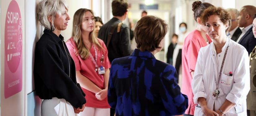 S.A.R. la Grande-Duchesse a rendu visite, ce mardi matin, à des enfants hospitalisés dans l’unité d’oncologie de la « Kannerklinik » au Centre Hospitalier du Luxembourg. Elle y a été accueillie par le Président Paul Mousel et la Directrice Générale, le Dr Martine Goergen, du CHL.