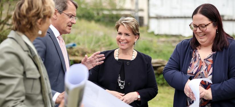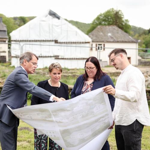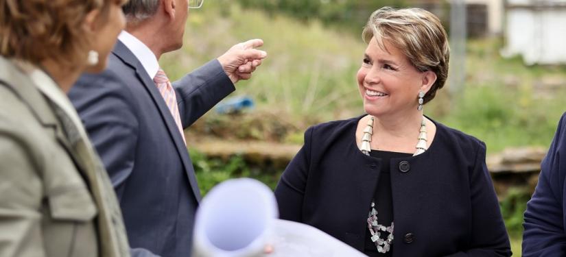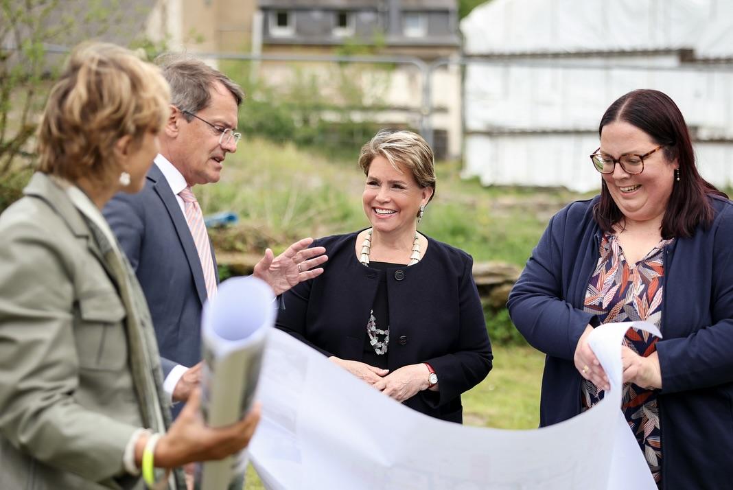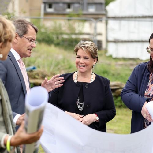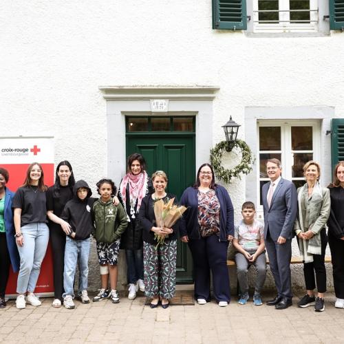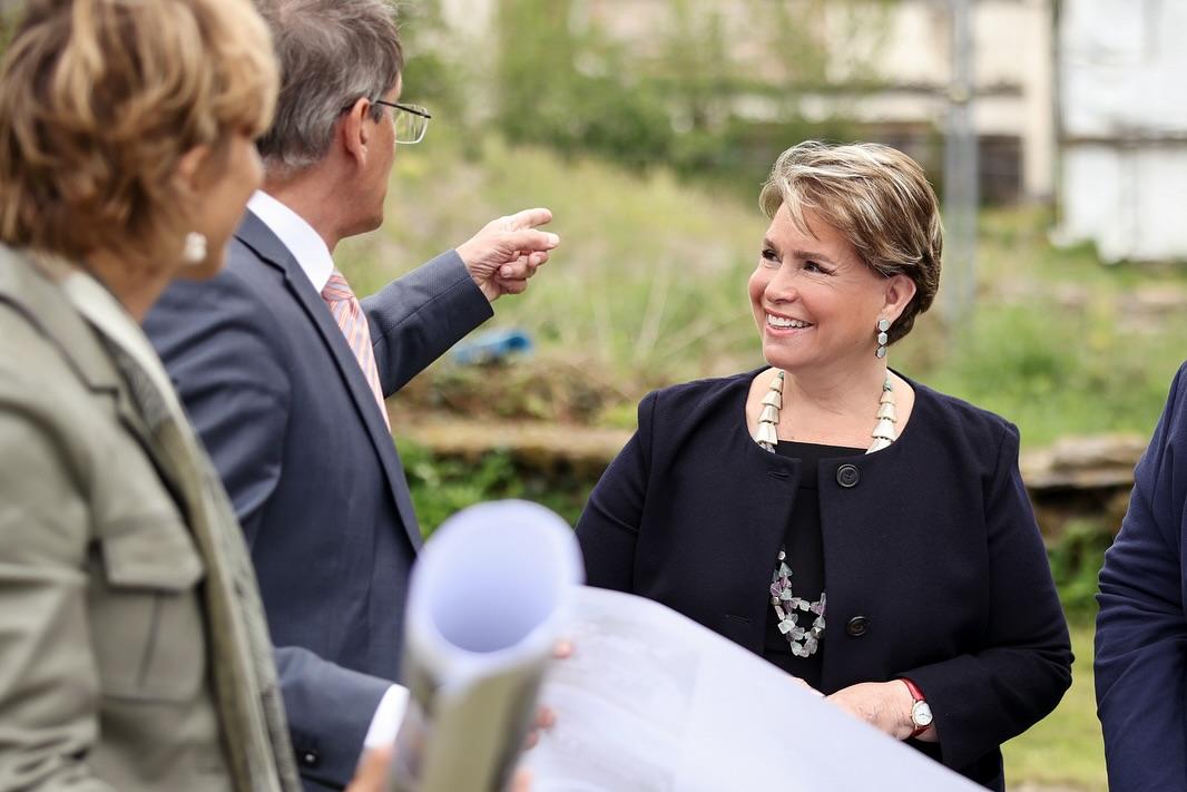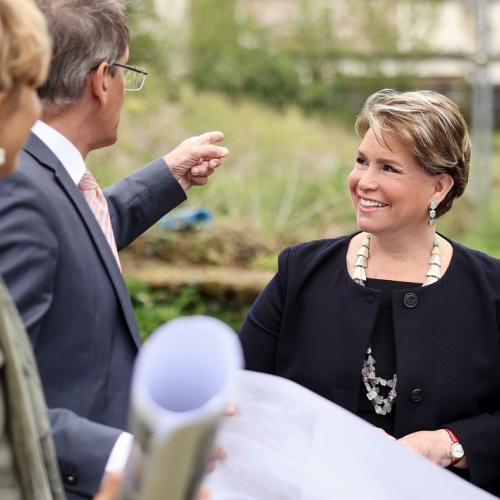 Après la visite du bâtiment, alors que les enfants prenaient part à une activité « vélo », la Grande-Duchesse s’est fait expliquer, sur site, le projet du futur bâtiment du CST qui sera construit dans une ferme et sur les terrains avoisinants offerts à la Croix-Rouge par un généreux mécène.