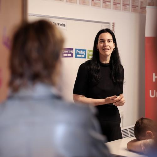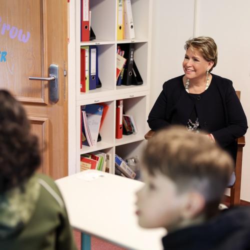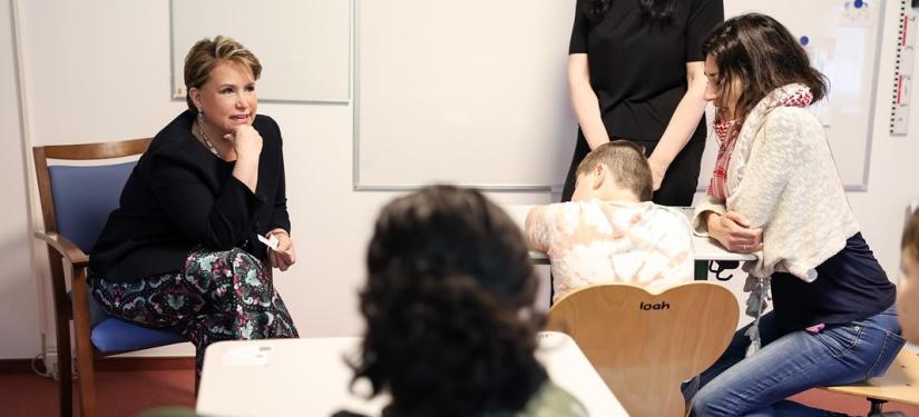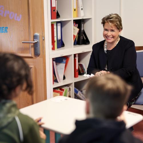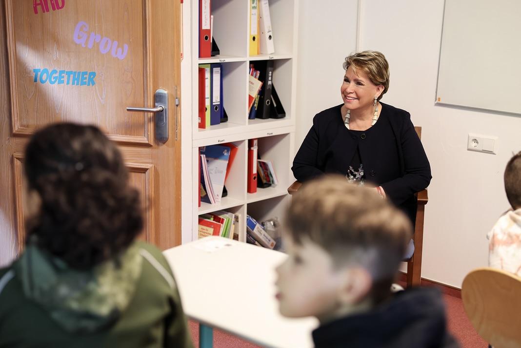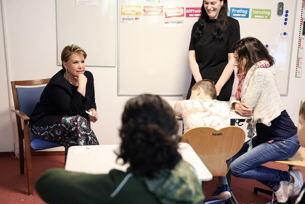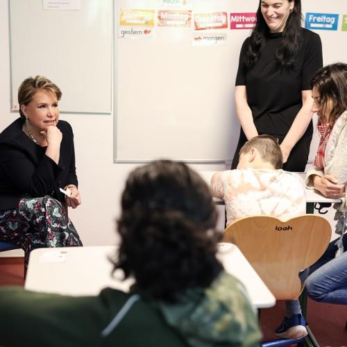 S.A.R. la Grande-Duchesse a d’abord rencontré le personnel d’encadrement puis a échangé lors d’un cours avec de jeunes élèves du Centre.